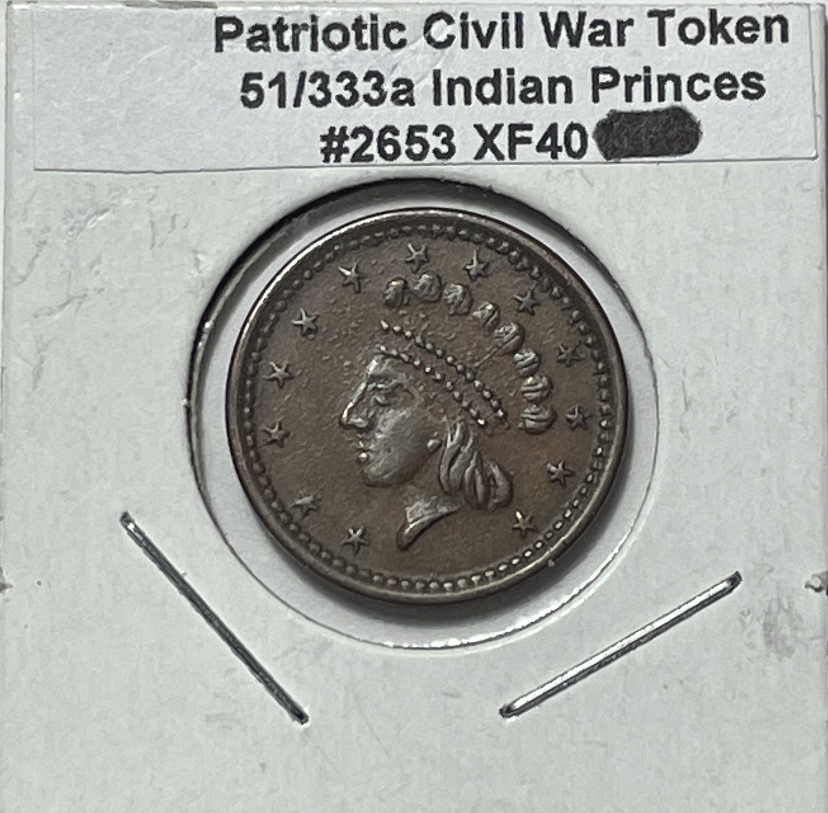 1863 Patriotic Civil War Token - Indian Princess - Our Army