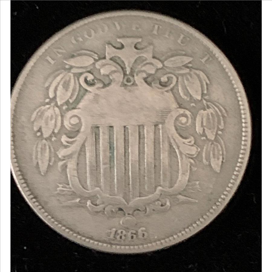 1866 WITH RAYS SHIELD NICKEL