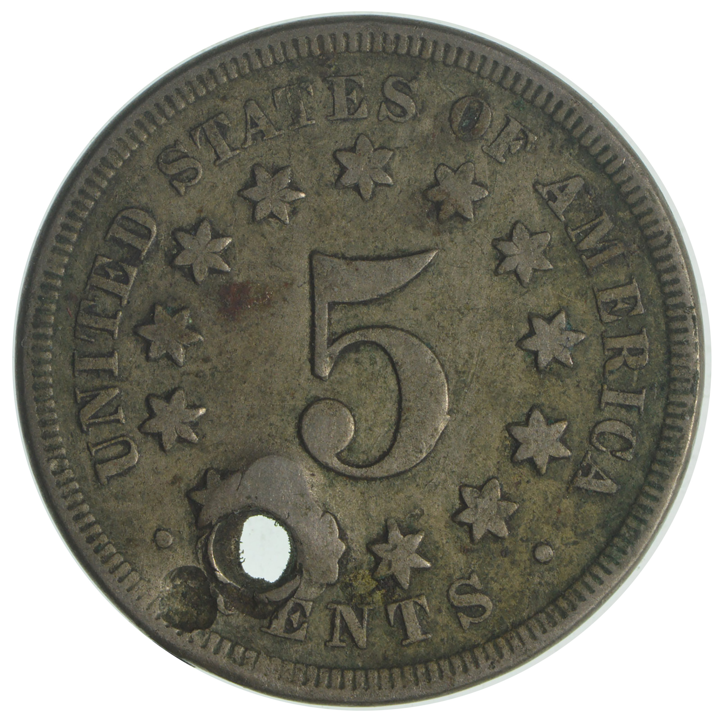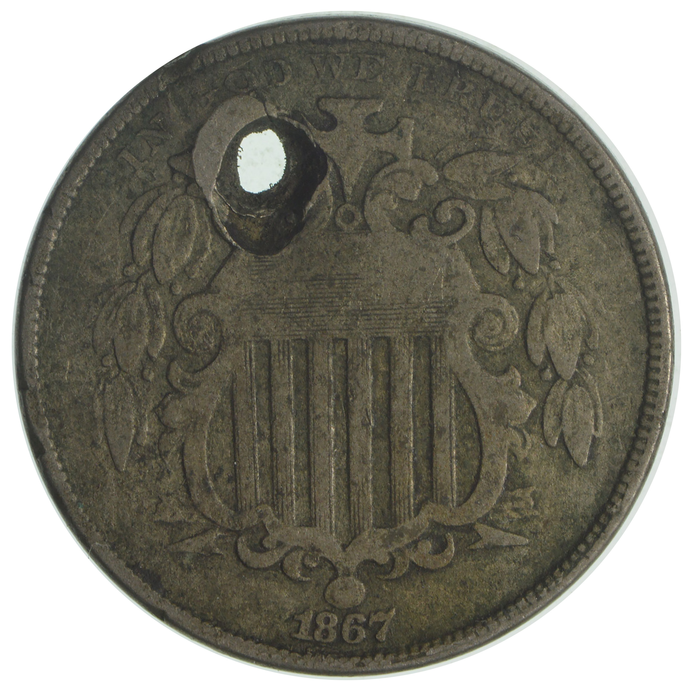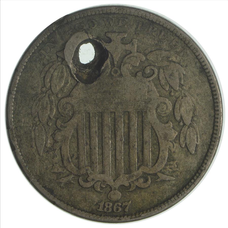 1867 Shield Nickel - Without Rays *Condition: Hole