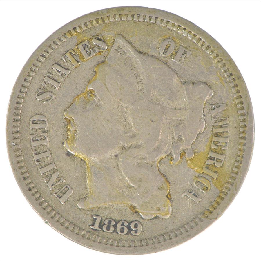 1869 - TRIME - Historic US Type Coin - Better Date - Three Cent Piece