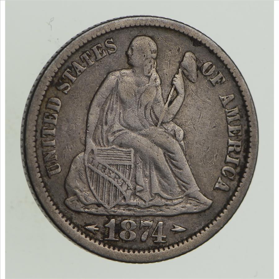1874 Seated Liberty Silver Dime - Sharp