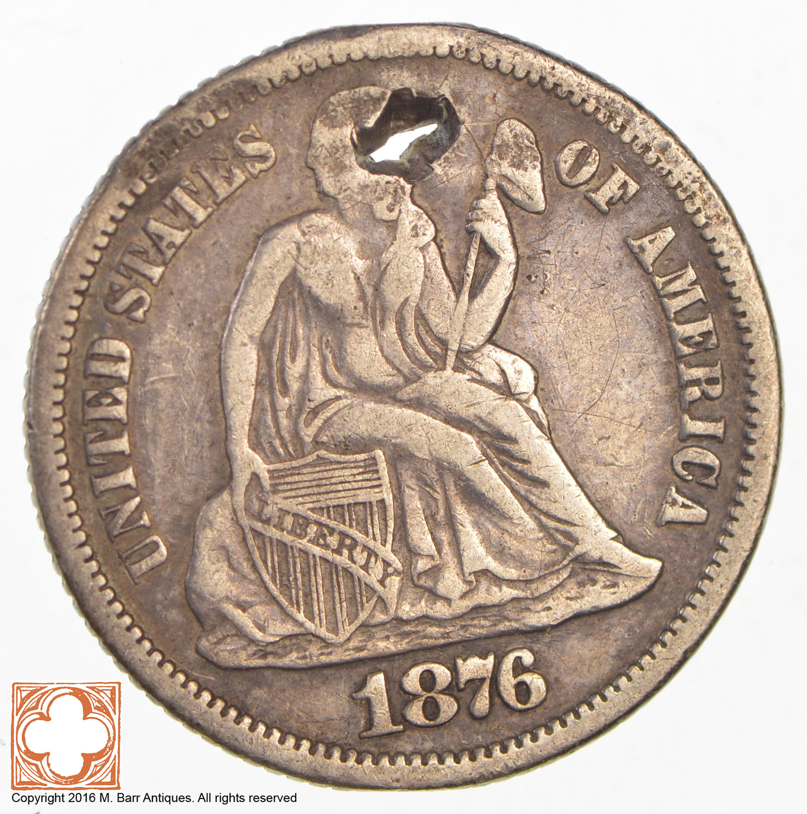 1876 Seated Liberty Silver Dime *Condition: Hole