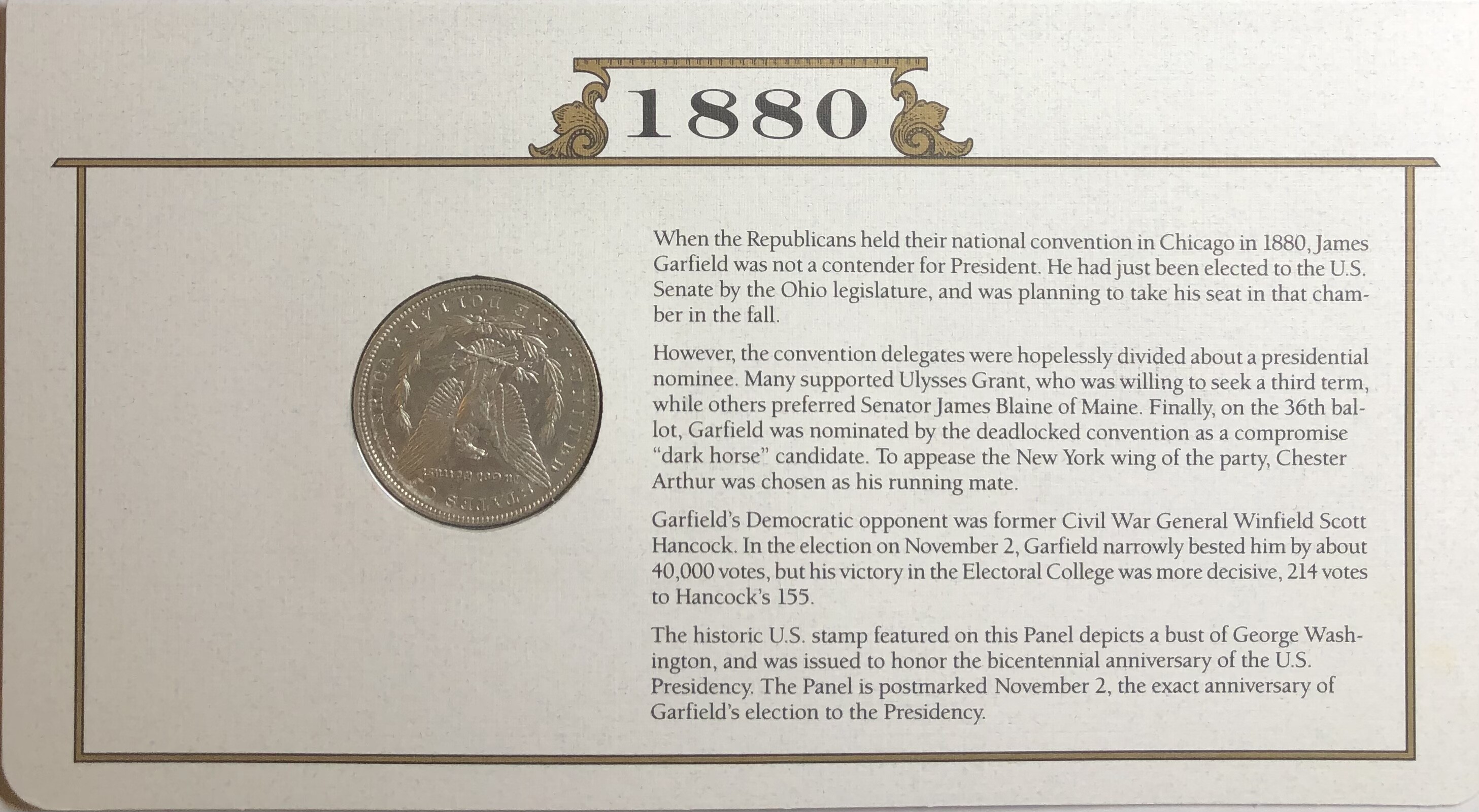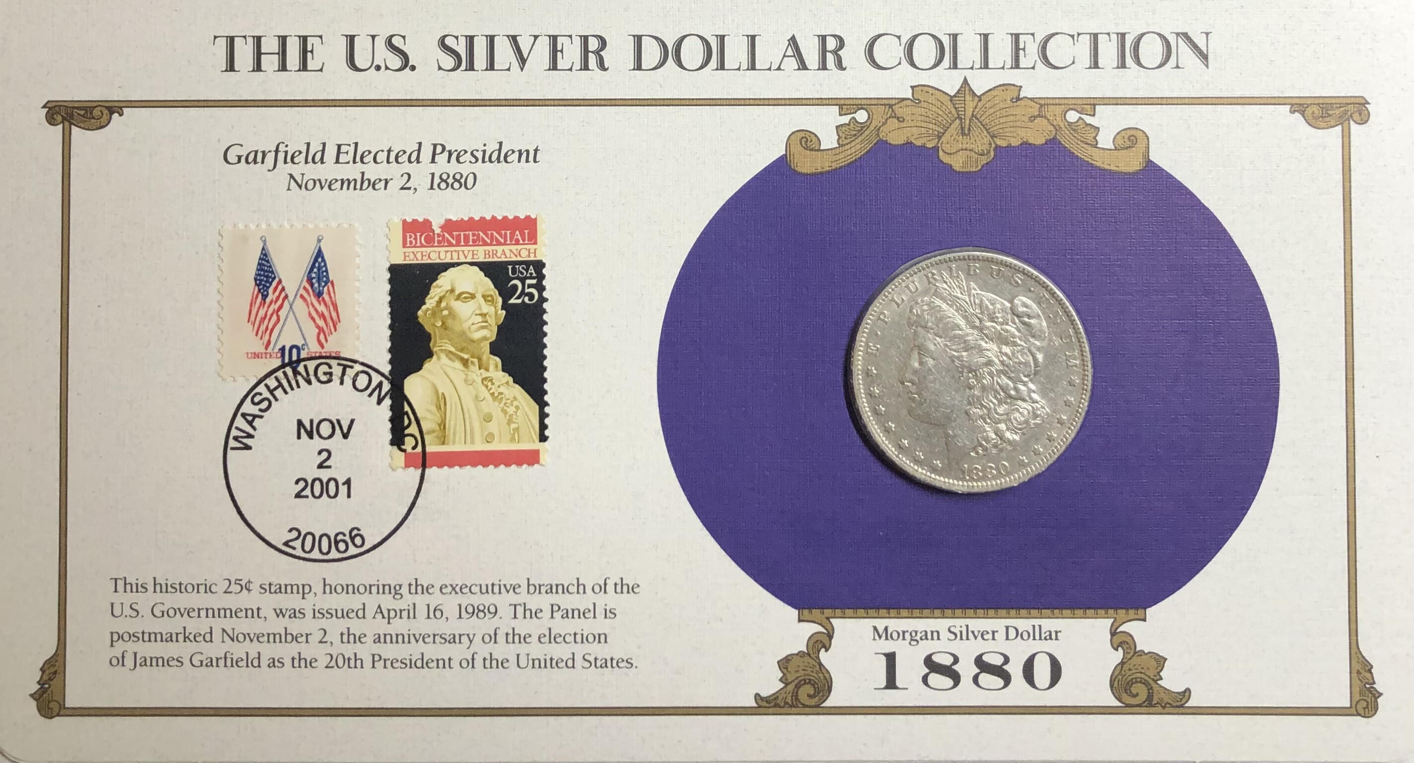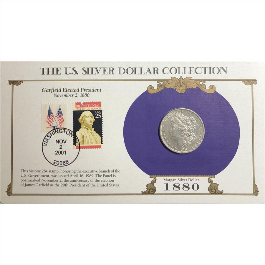 >1880-O U.S. Silver Morgan Dollar-The U.S. Silver Dollar Collection With Stamp Honoring James Garfield Elected as 20th President
