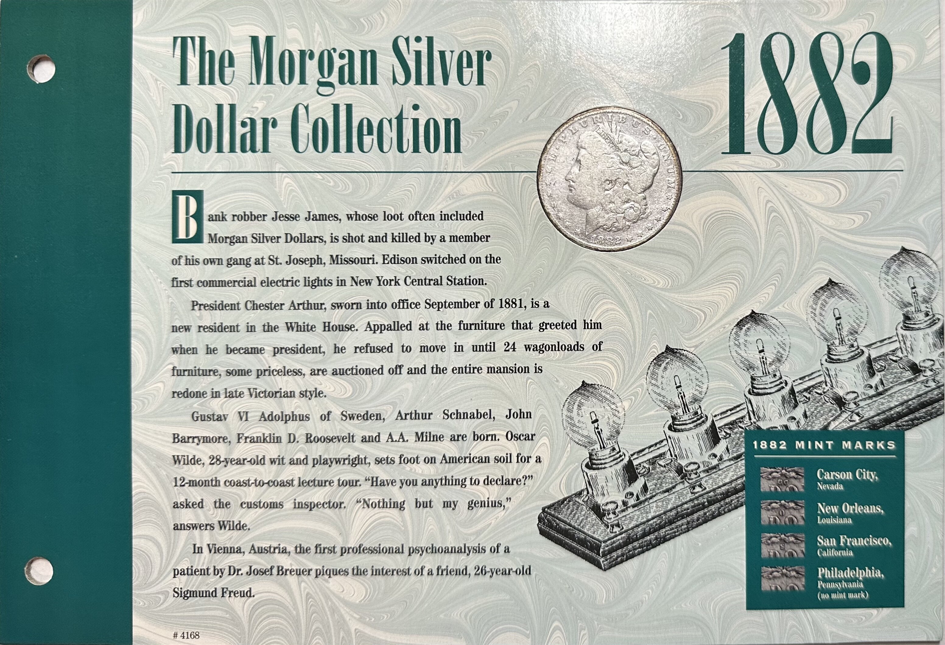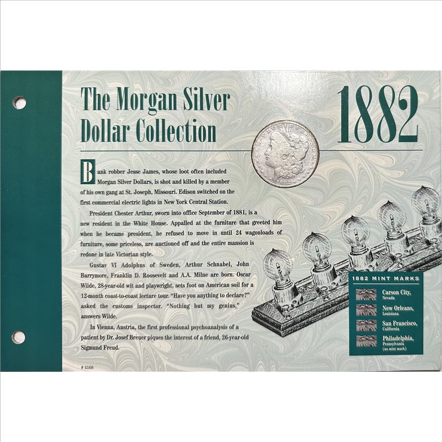>1882 U.S. Silver Morgan Dollar - The Morgan Silver Dollar Collection - Historic Events of the Time and COA