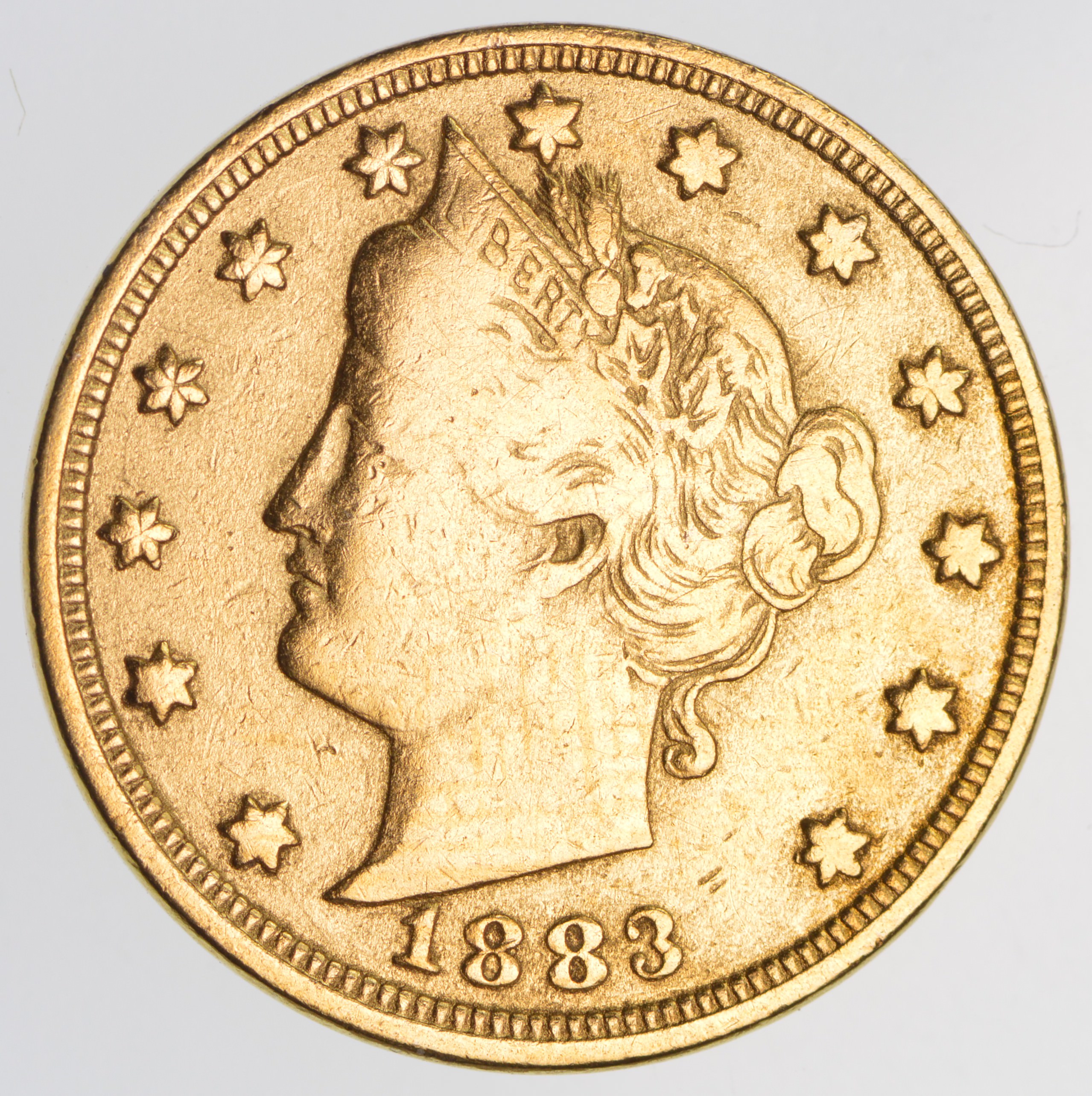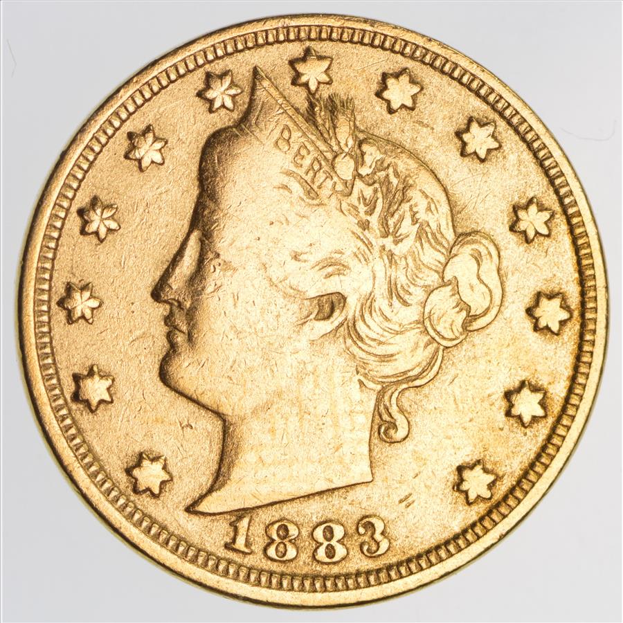 You are bidding on the exact coin(s) in the photograph. You will receive the exact coin(s) in the photo.  In 1883 the Mint issued a new design for the nickel with the head of Liberty and a Roman “V” meaning “5” on the reverse. Many people thought that the coin was an error since in didn’t have “cents” written on the coin.The lack of the word cents created an opportunity for the unscrupulous. The coins were gold plated and they were passed off as $5 gold coins.