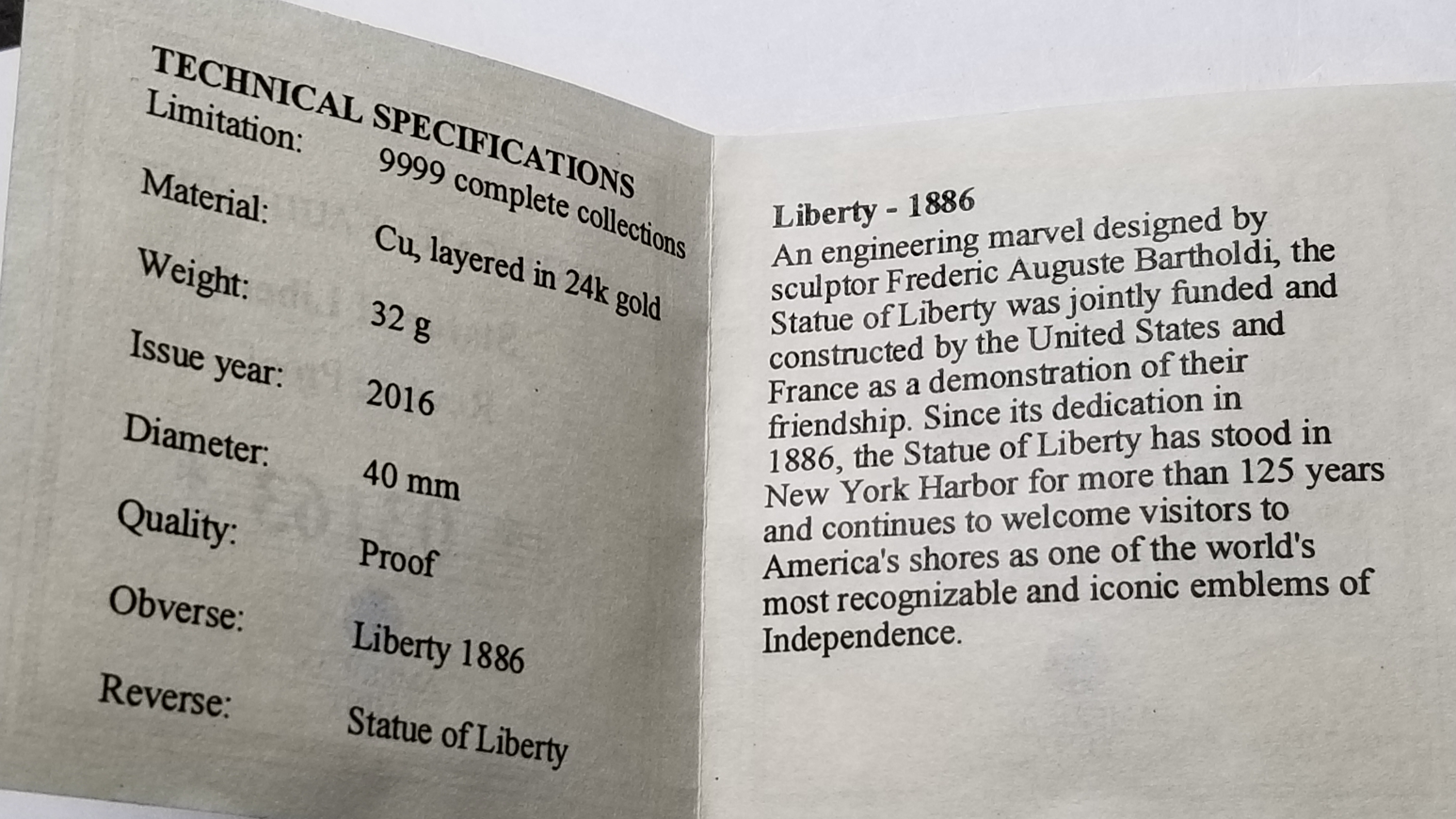 1886 Statue of Liberty Cu Layered in 24k Gold Coin