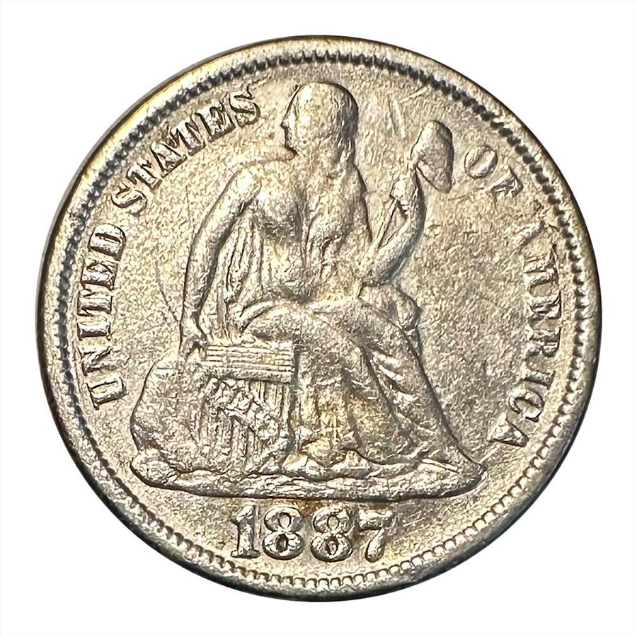 1887 U.S. Silver Seated Liberty One Dime LOVE TOKEN, Engraved