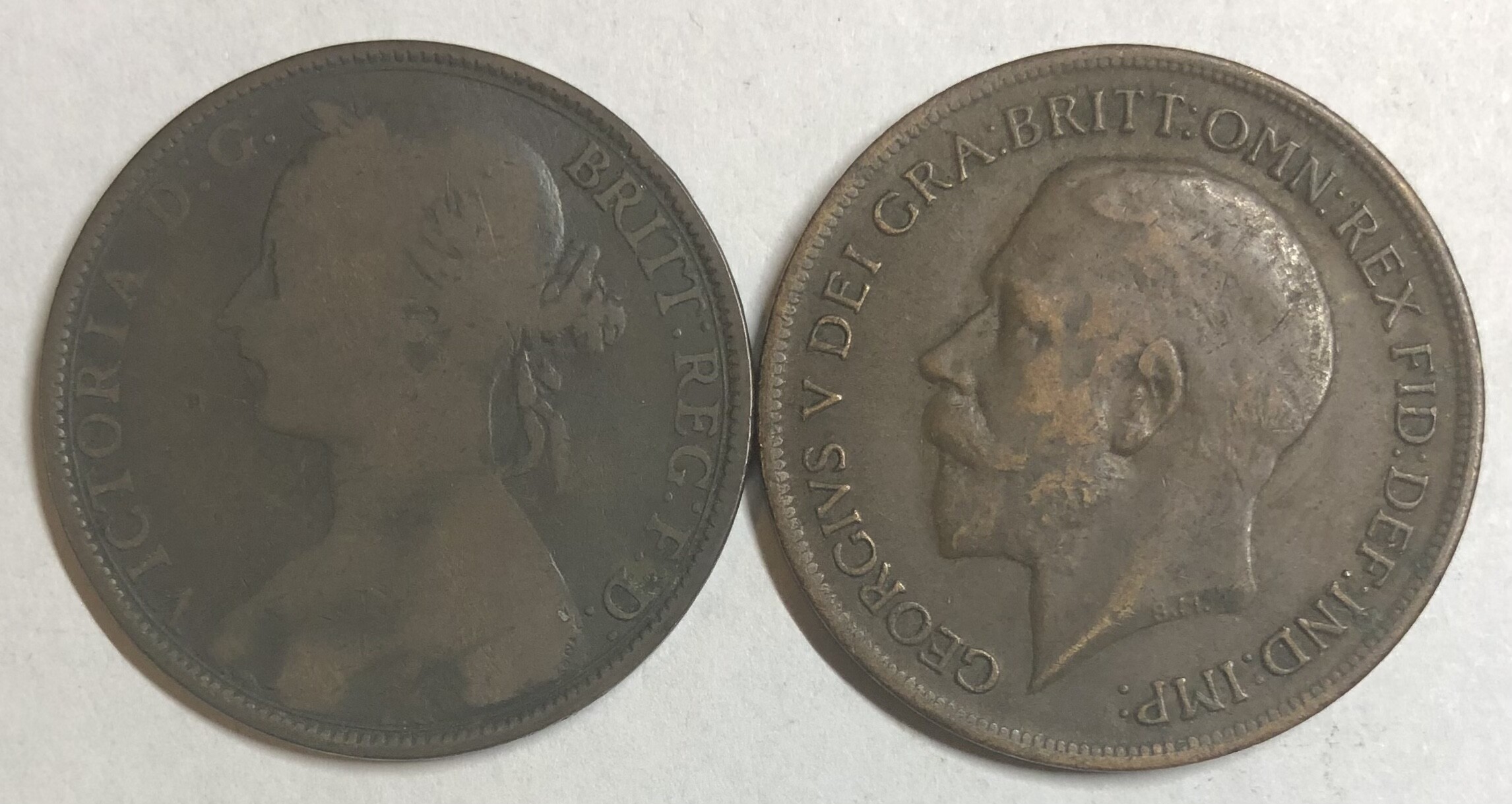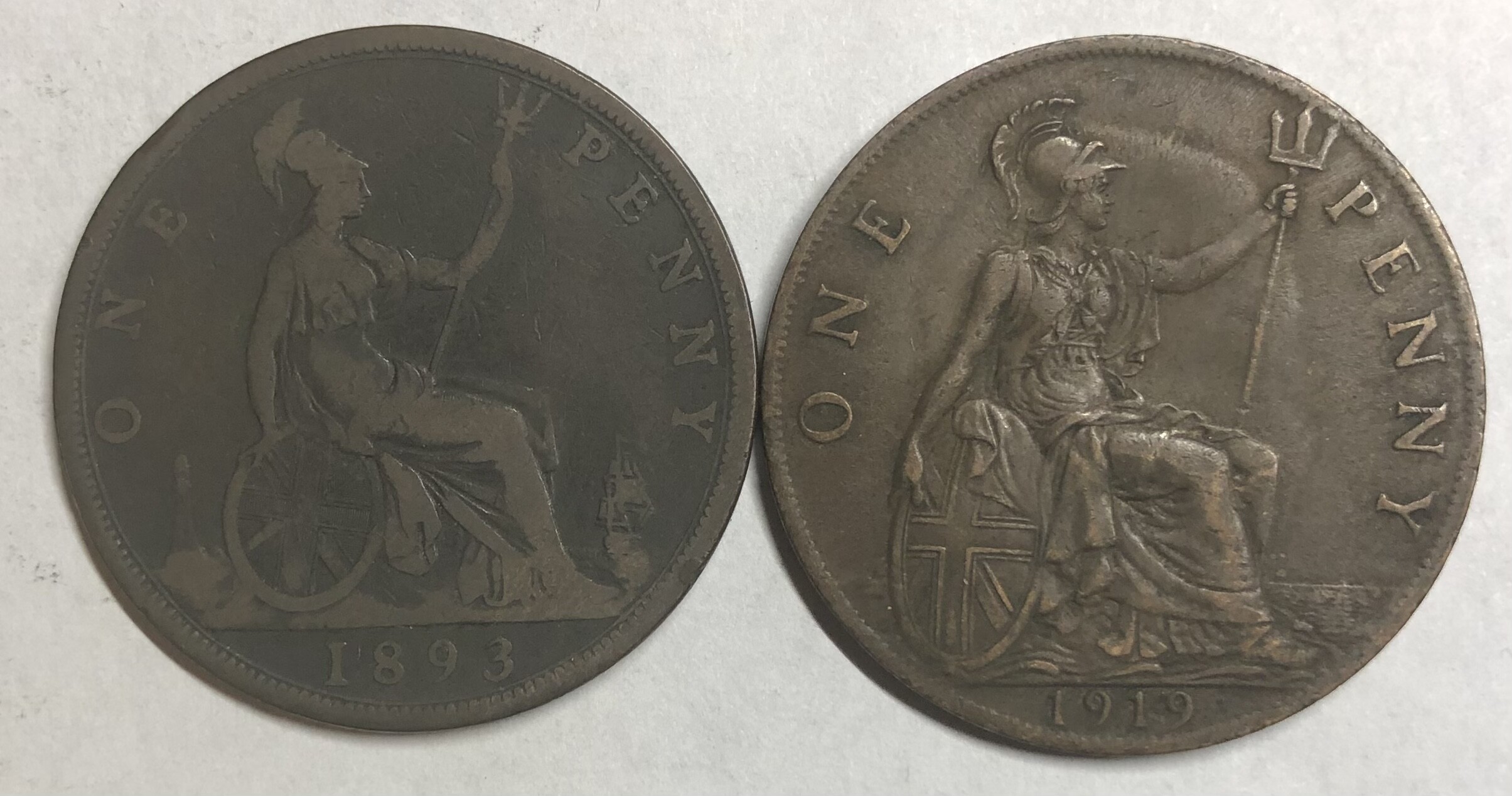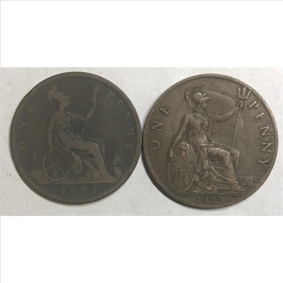 >1893 and 1919 Great Britain One Penny - 2 Coins