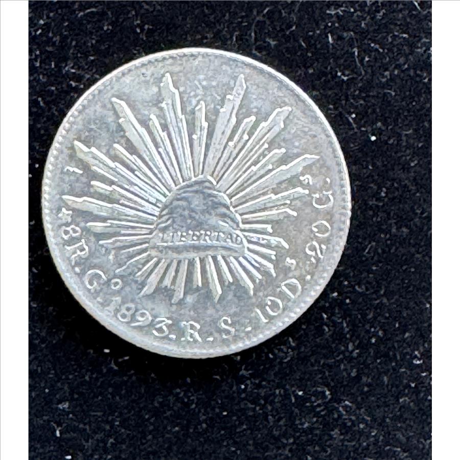 1893 GO RS MEXICO SILVER 8 REALES CAP & RAYS, HIGH QUALITY COIN