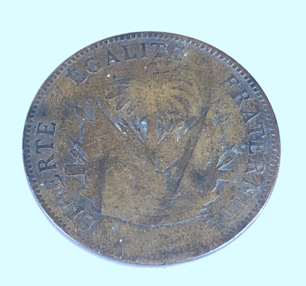 1896 Republic of Haiti 2 Cent Copper Coin Hard to Find Scarce in Any Condition