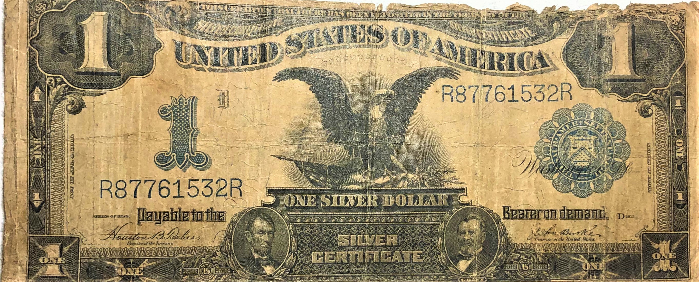 1899 US Black Eagle $1 Horse Blanket Currency Note