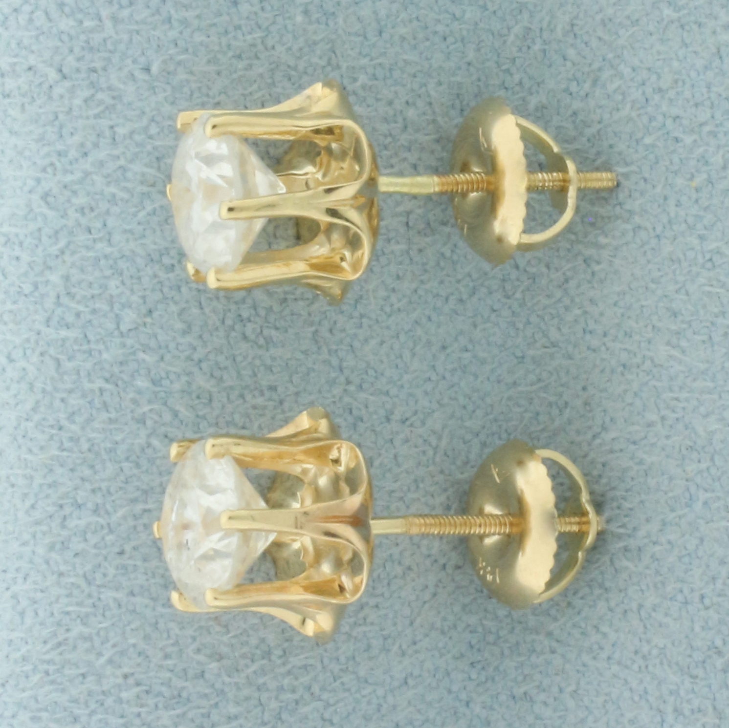 1.8CT Diamond Screw Back Stud Earrings in 14k Yellow Gold