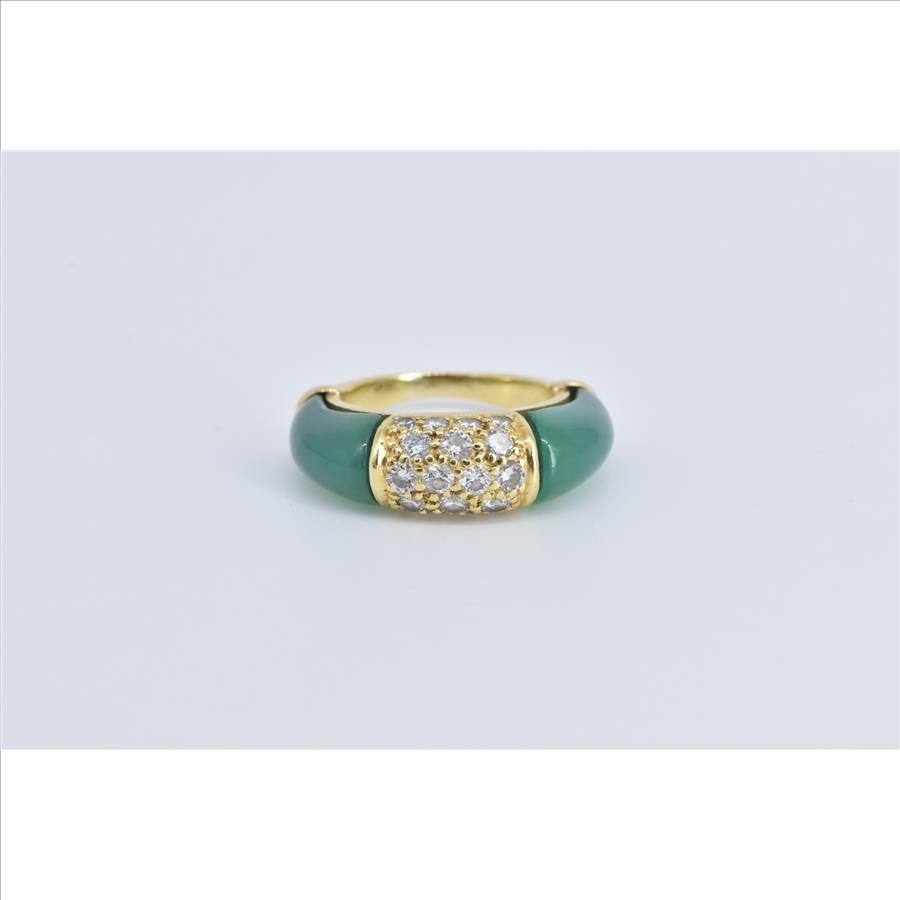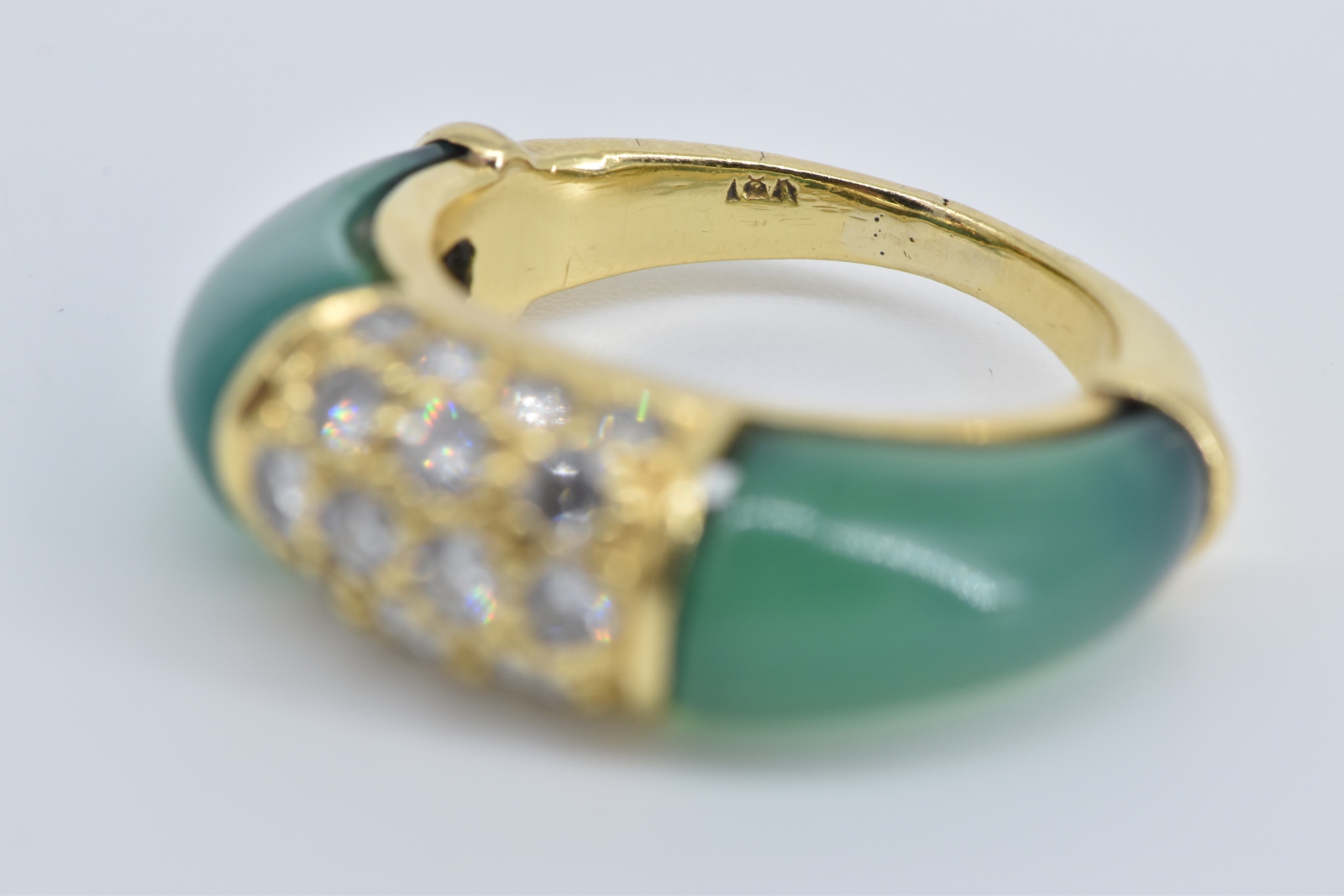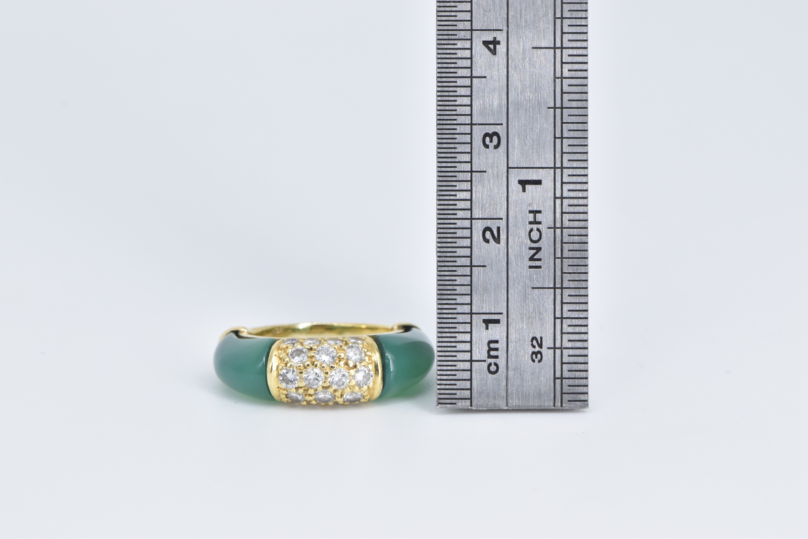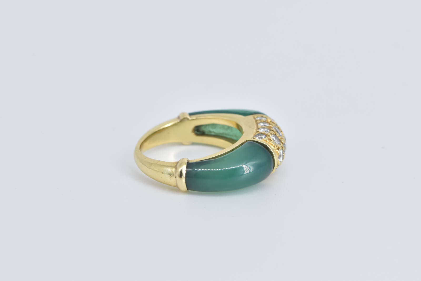 Item:  18K 0.50 Ctw Diamond Carved Green Carnelian Yellow Gold Ring, Size 5