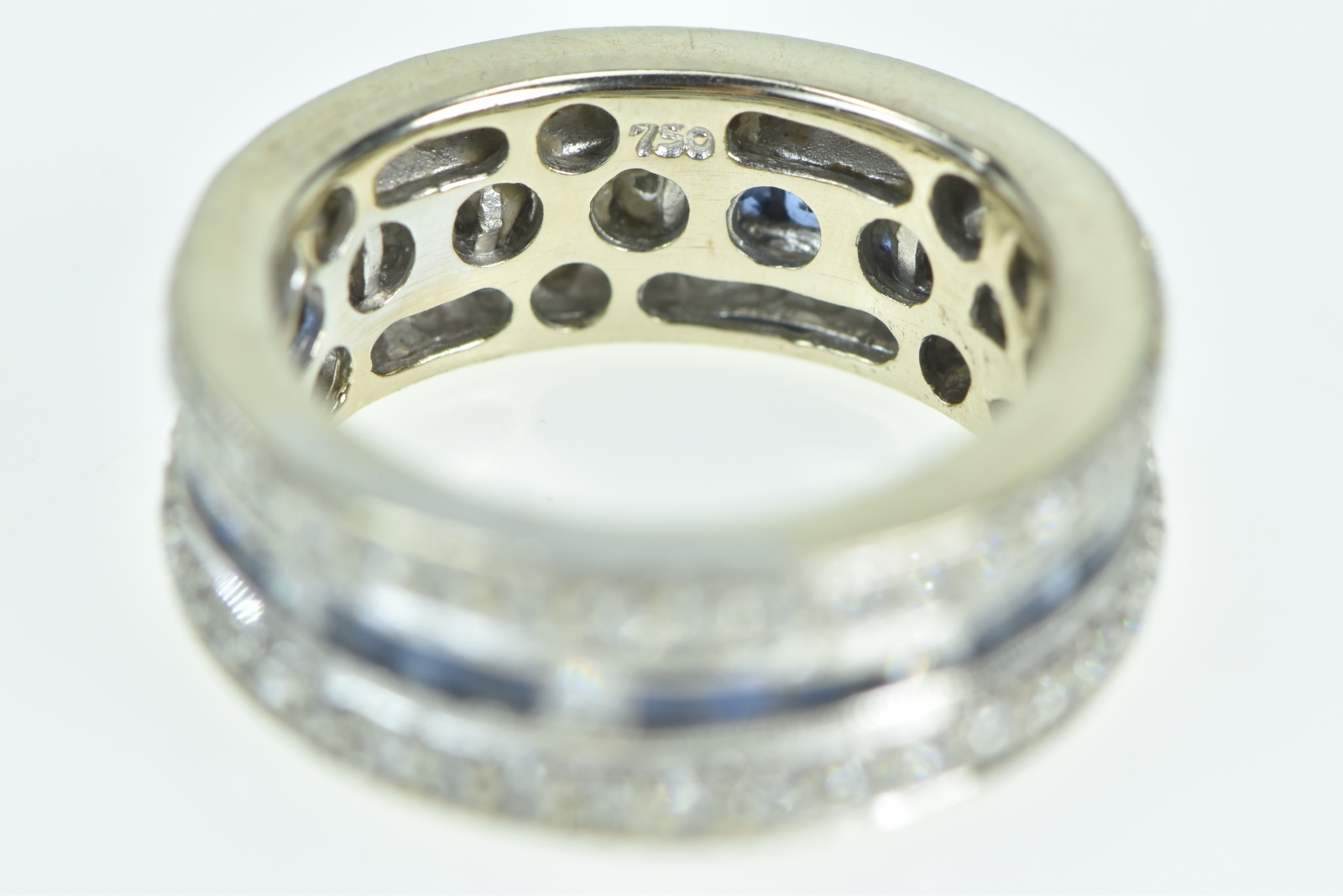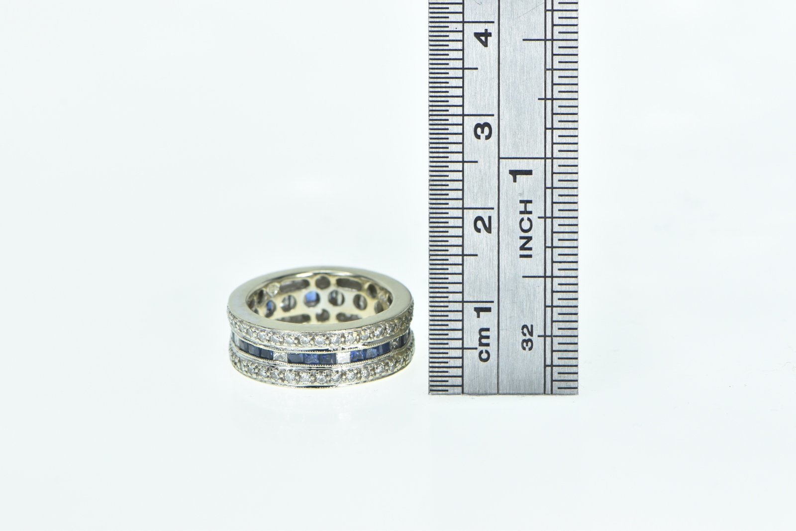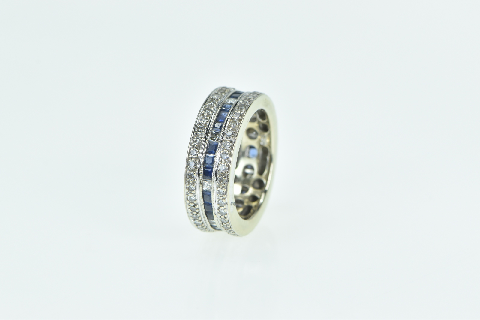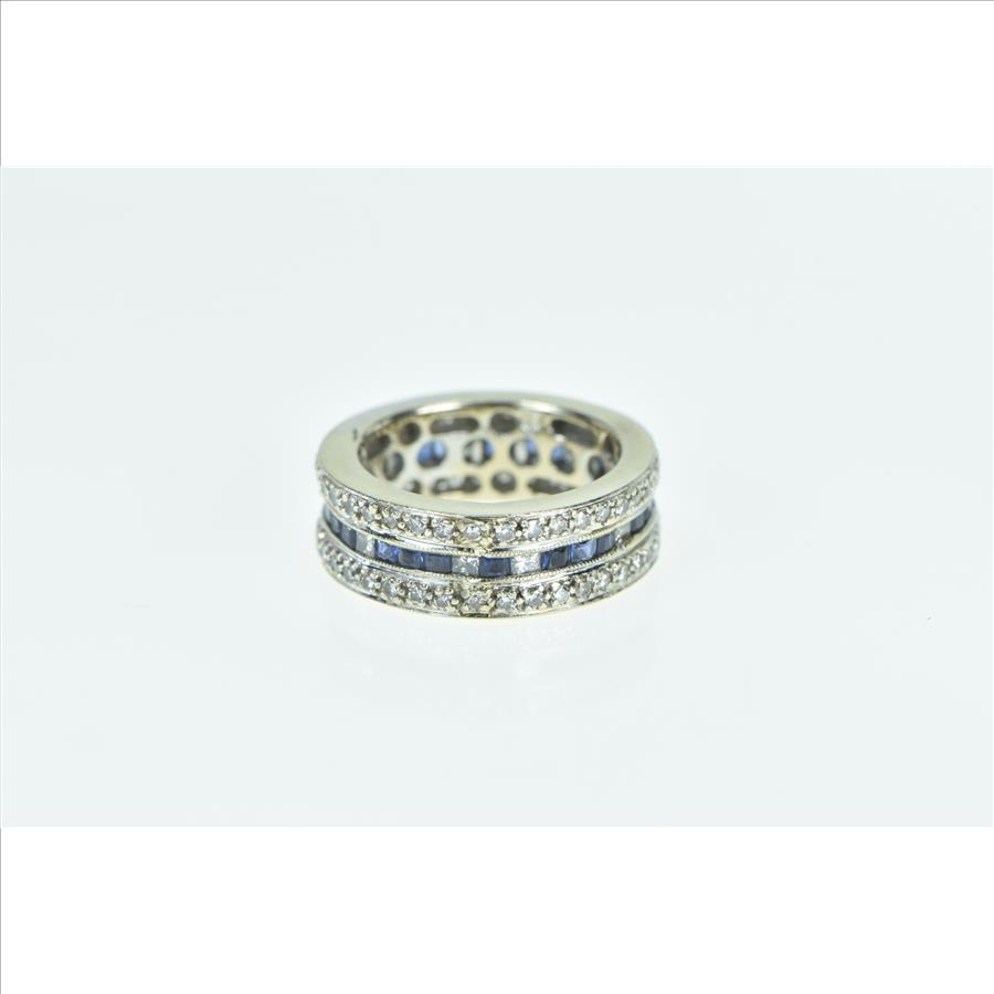 Item:  18K 1.30 Ctw Diamond Sapphire Eternity White Gold Ring, Size 4.5
