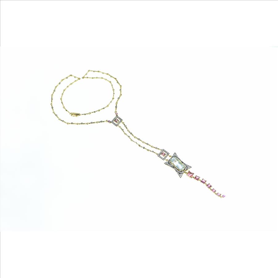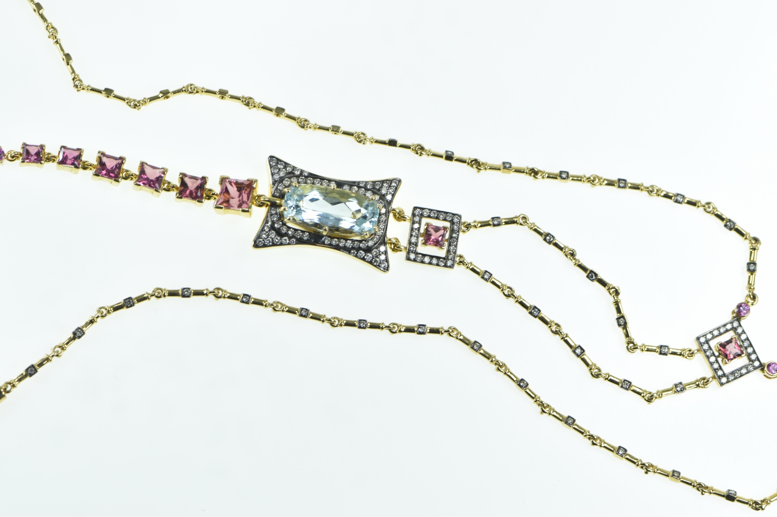 Item:  18K 13.50 Ctw Aquamarine Diamond Tie Yellow Gold Necklace 17.25"