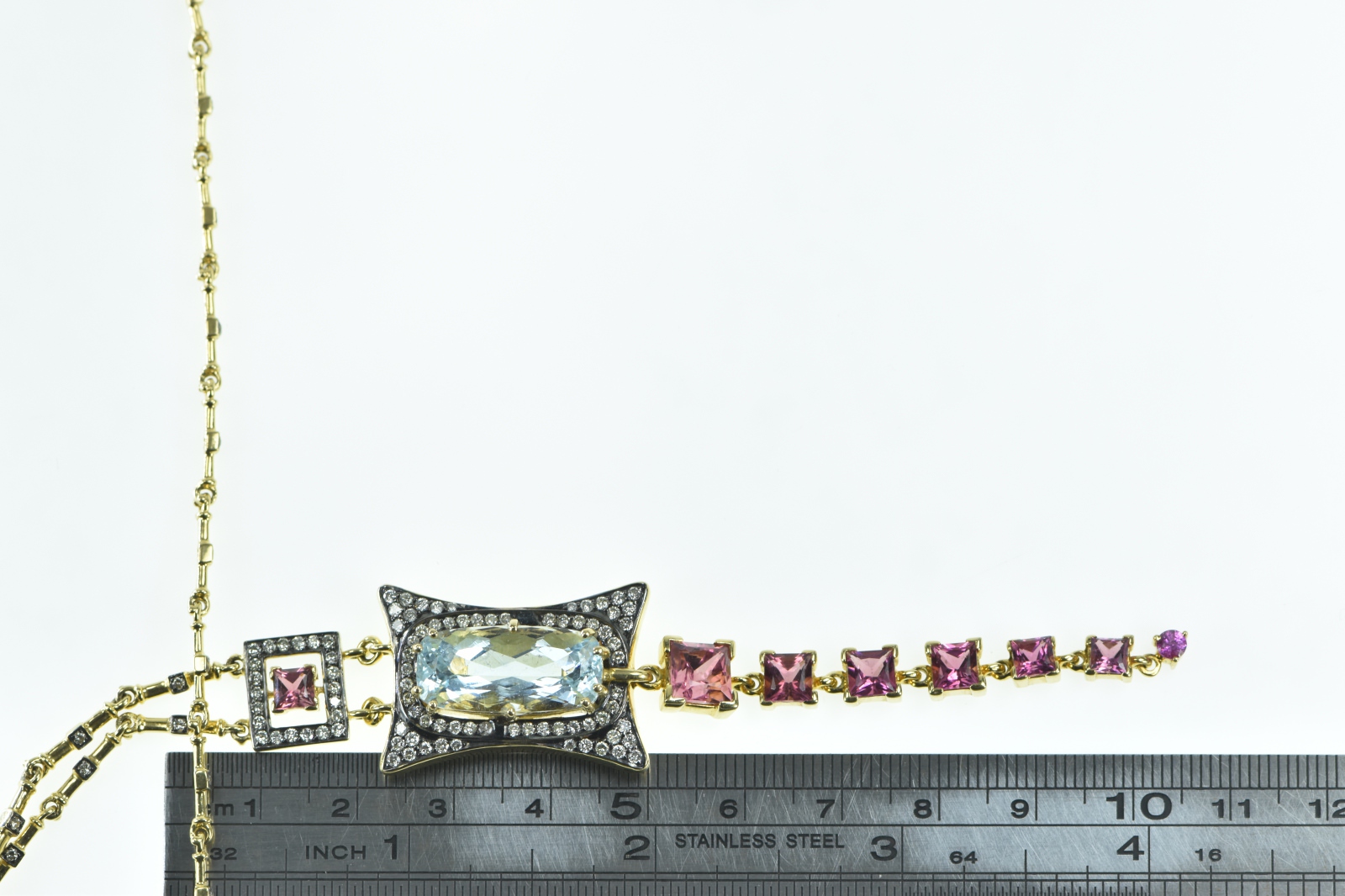 18K 13.50 Ctw Aquamarine Diamond Tie Yellow Gold Necklace 17.25"