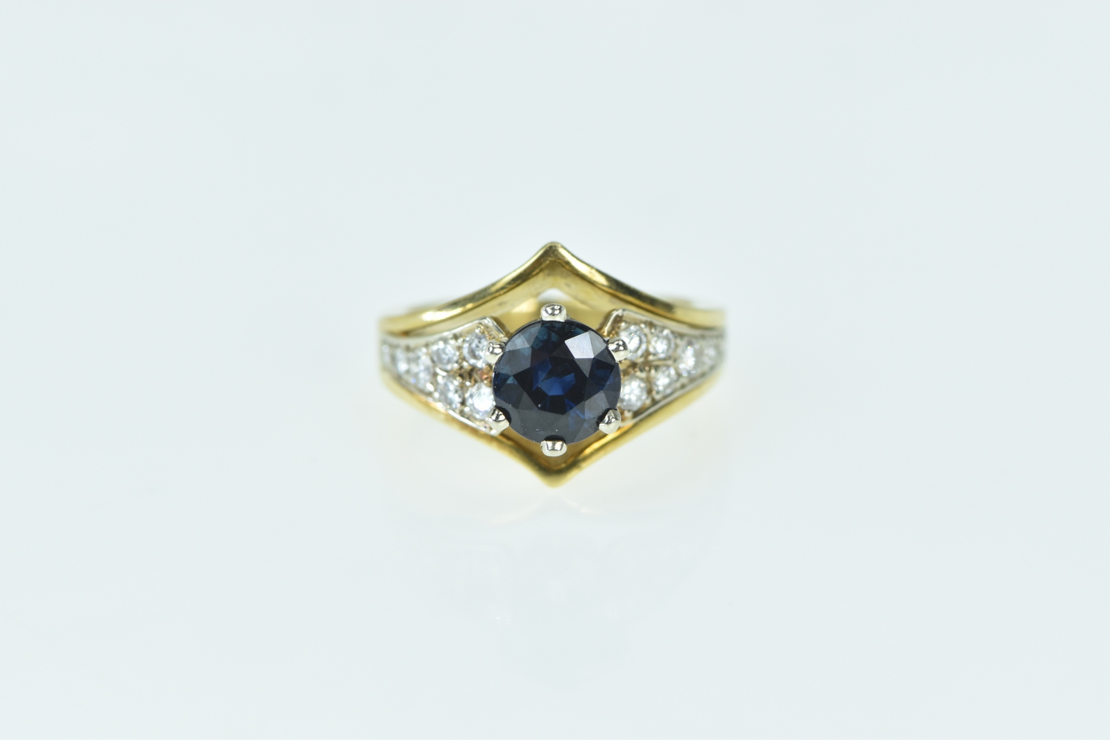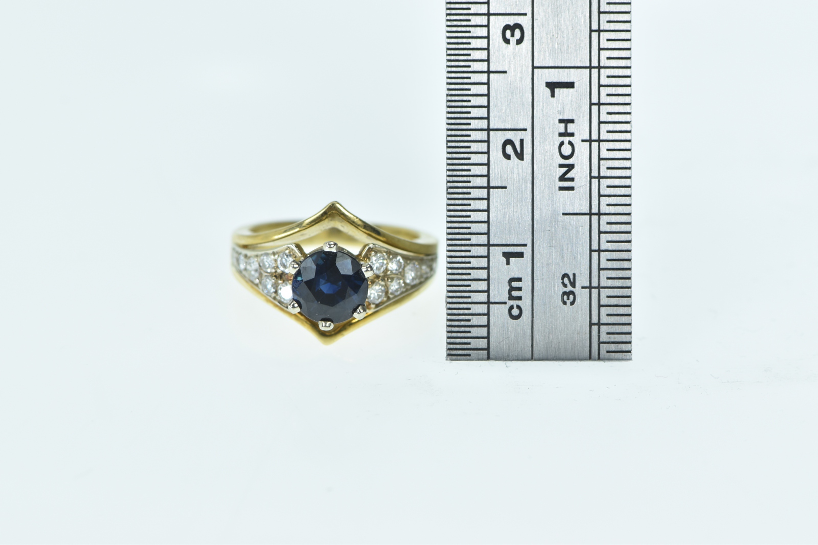 Item:  18K 1.69 Ctw Sapphire Diamond Chevron Yellow Gold Ring, Size 4.25