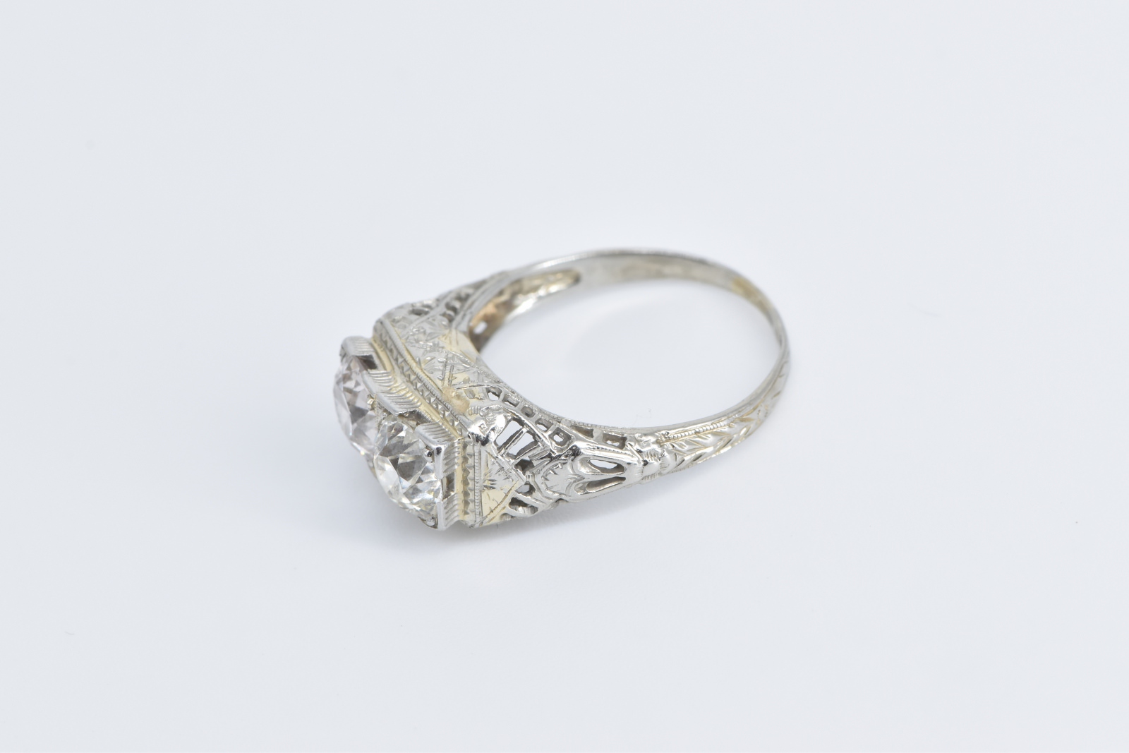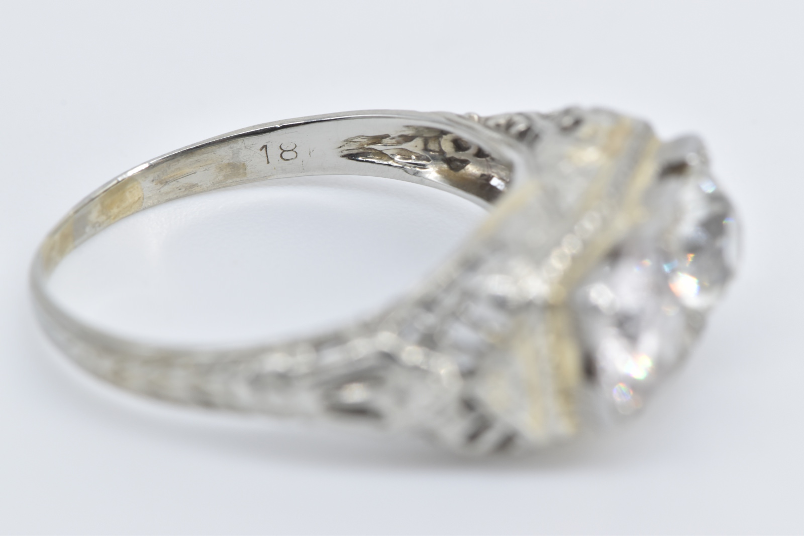 18K 1.90 Ctw Art Deco Natural Diamond Engagement White Gold Ring, Size 7