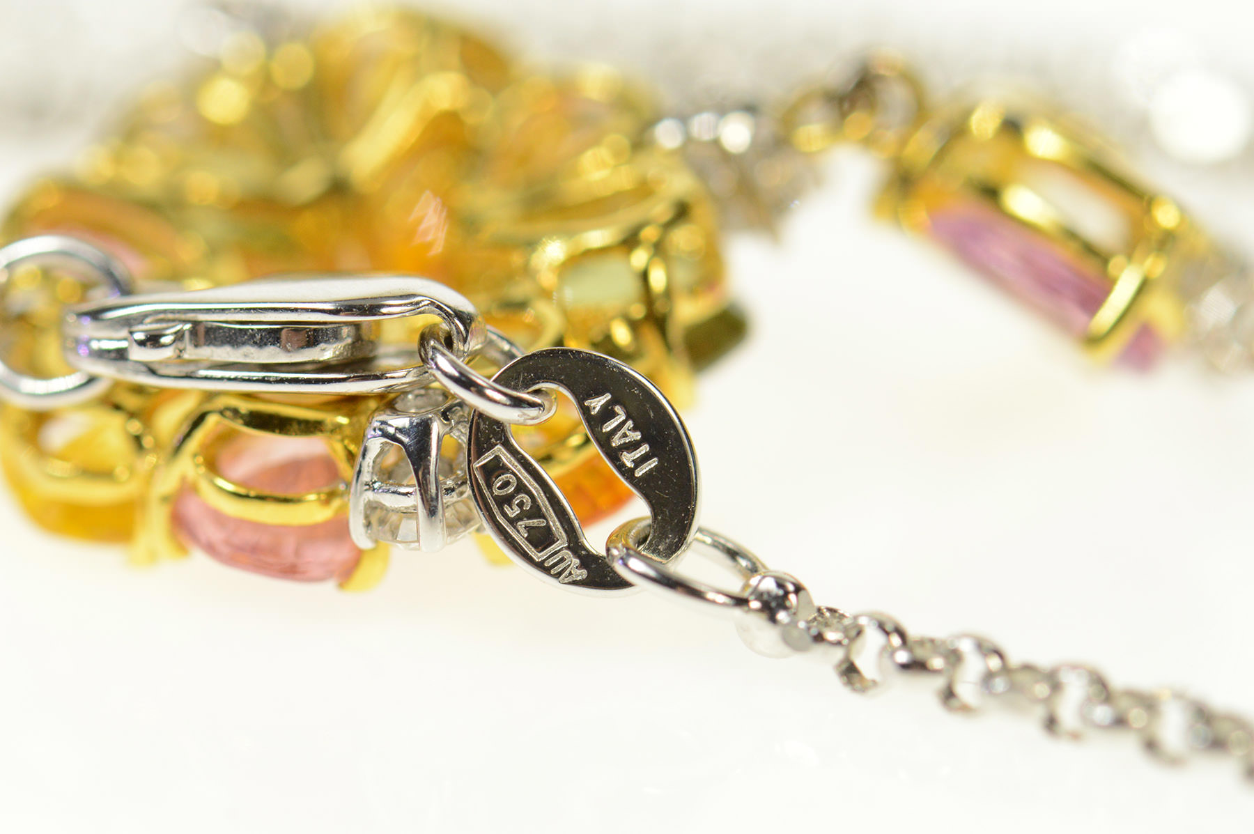 Gem Stone:  4.00 Ctw=10x Green, Pink & Yellow Sapphire 0.39 Ctw=18x Diamond SI