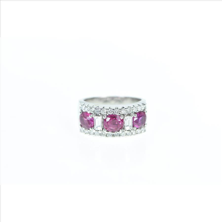 Item:  18K 1.93 Ctw Pink Sapphire Diamond Band White Gold Ring, Size 6.5