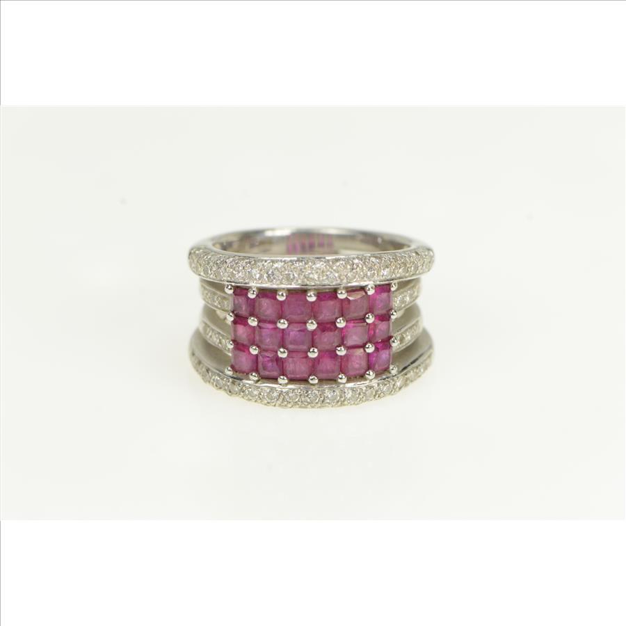 18K 2.50 Ctw Natural Ruby Diamond Cluster Layer White Gold Ring, Size 7.25