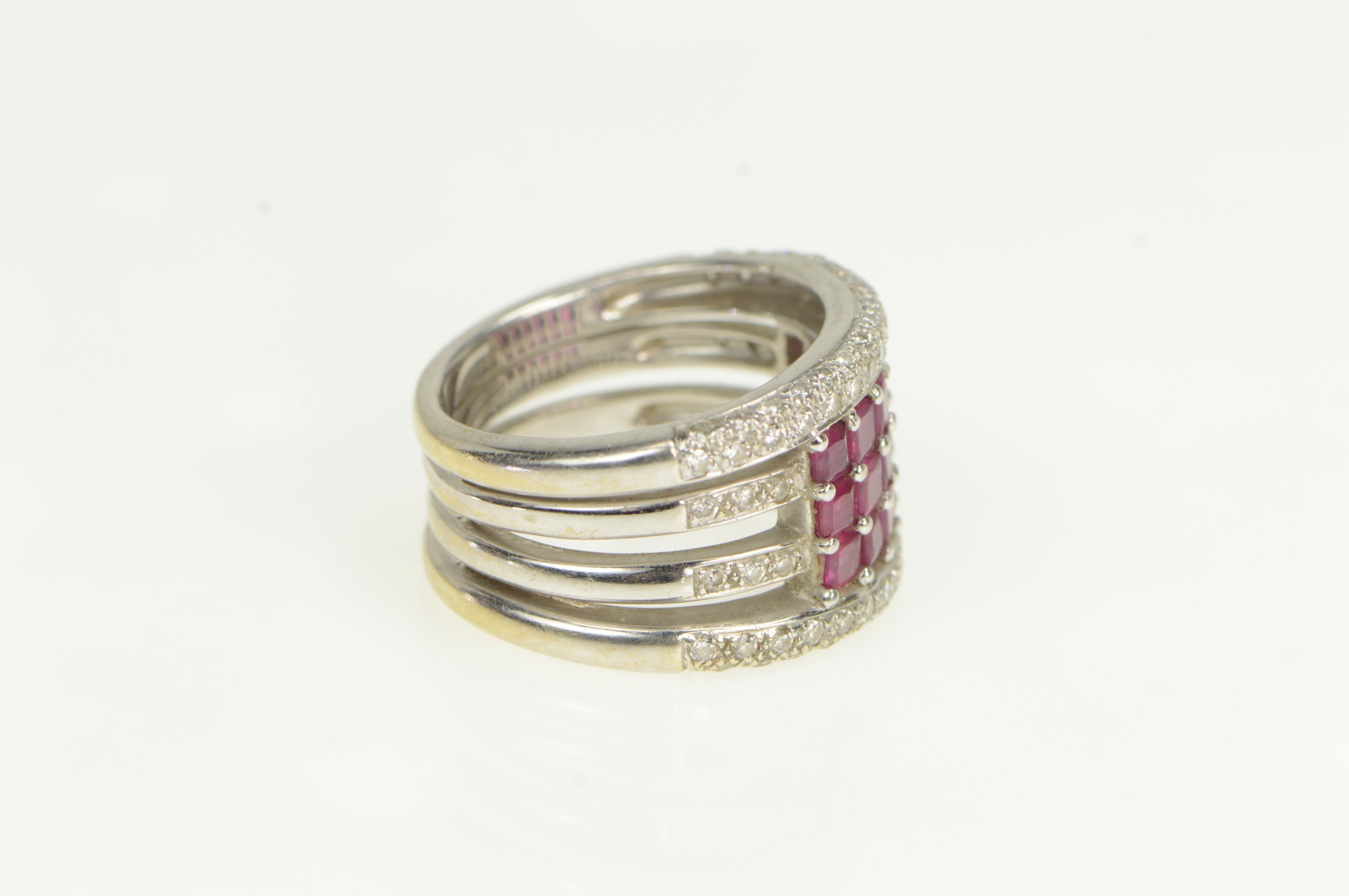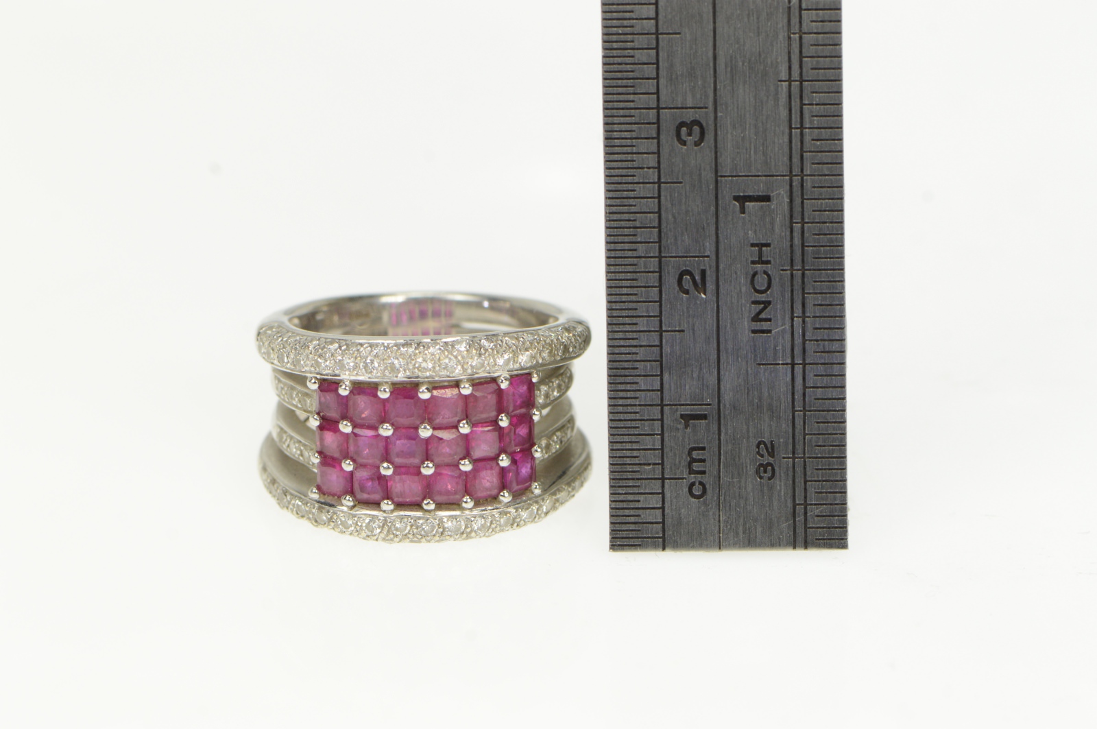 Item:  18K 2.50 Ctw Natural Ruby Diamond Cluster Layer White Gold Ring, Size 7.25