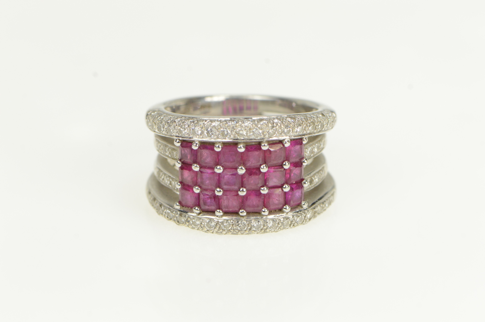 Gem Stone:  2.00 Ctw=18x Natural Ruby 0.50 Ctw=4x Diamond H, VS