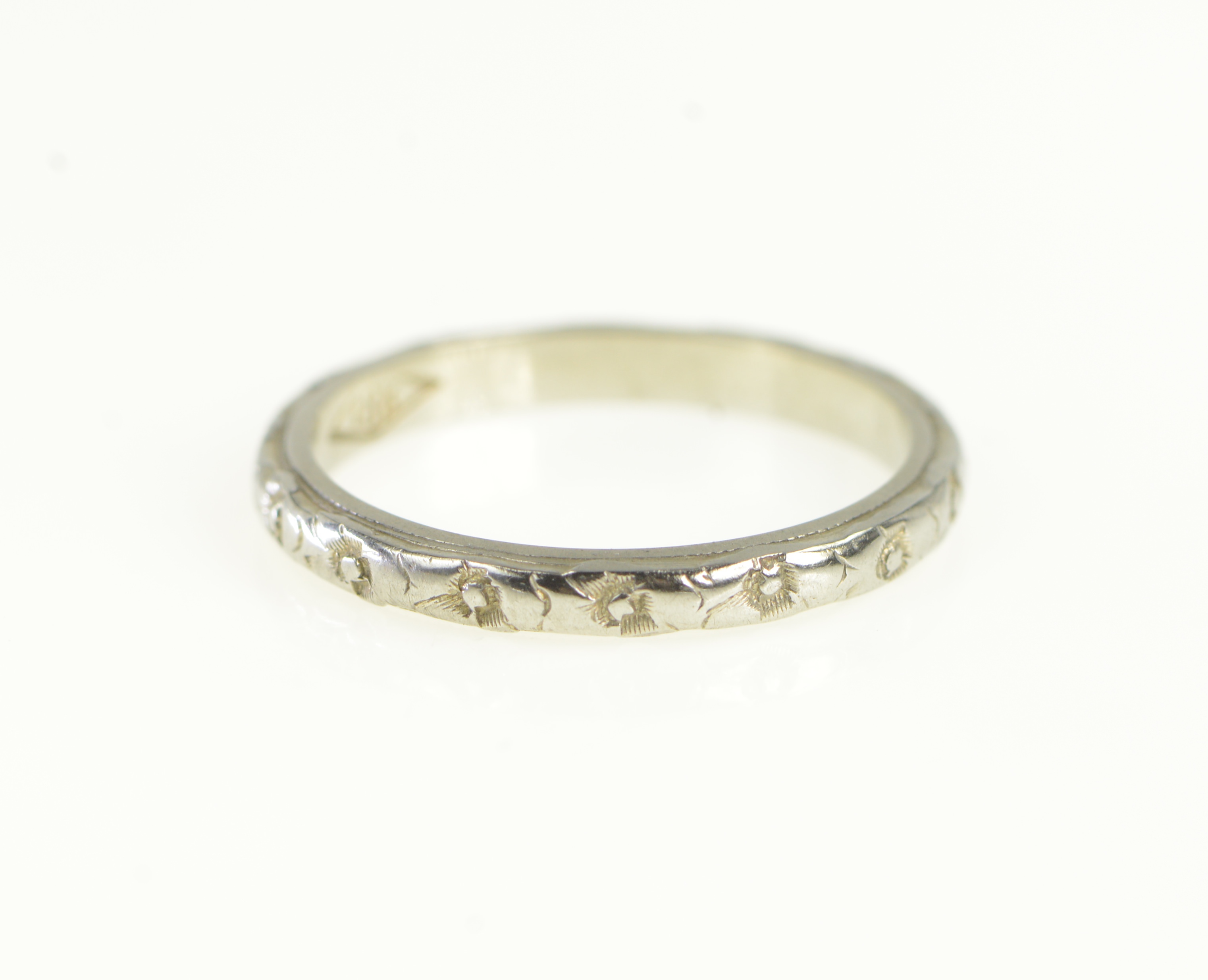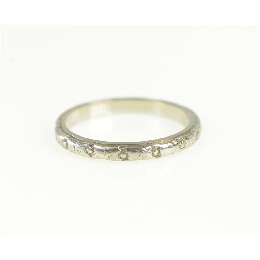 Item:  18K 2.5mm Orange Blossom Wedding Band White Gold Ring, Size 5.5