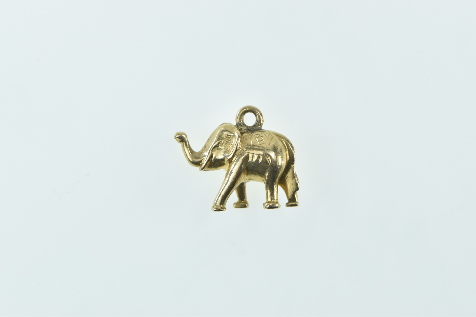 18K 3D Elephant Animal Patience Strength Symbol Yellow Gold Charm/Pendant