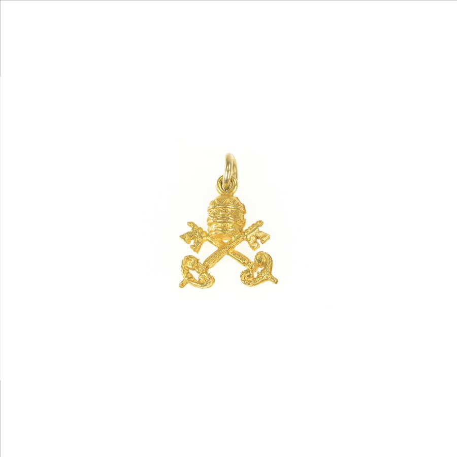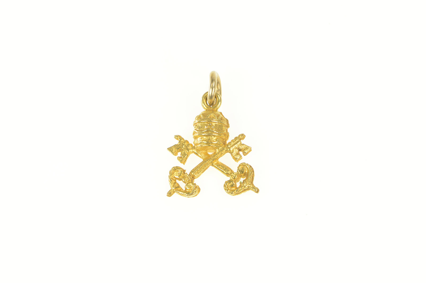 Item:  18K 3D Keys Crown Papal Vatican Insignia Yellow Gold Charm/Pendant