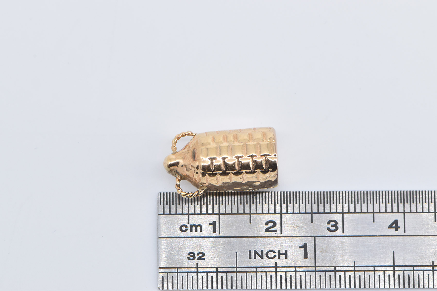 Item:  18K 3D Wine Cask Bottle Handled Jug Yellow Gold Charm/Pendant