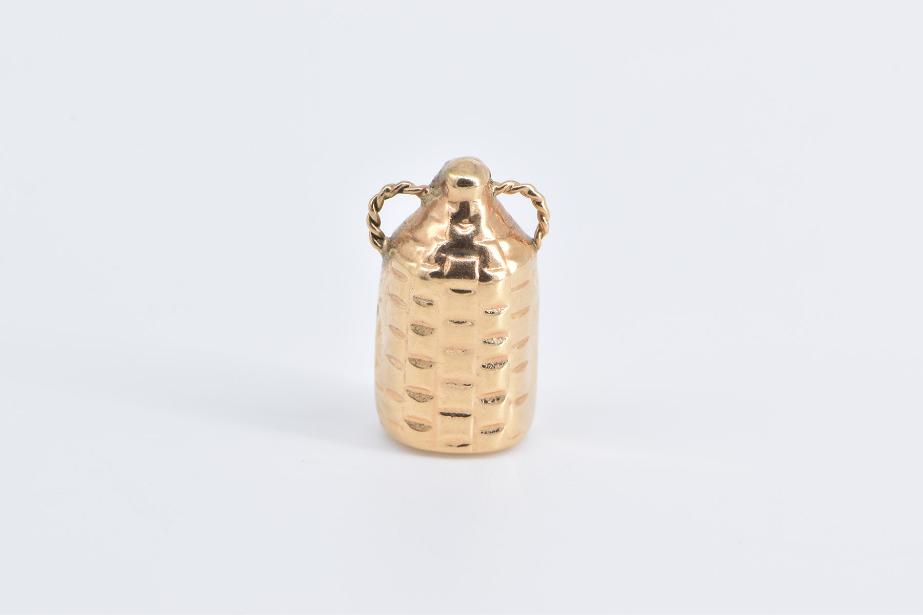 18K 3D Wine Cask Bottle Handled Jug Yellow Gold Charm/Pendant