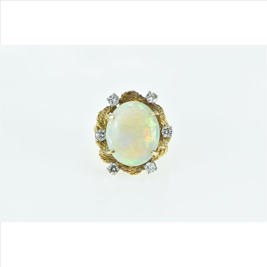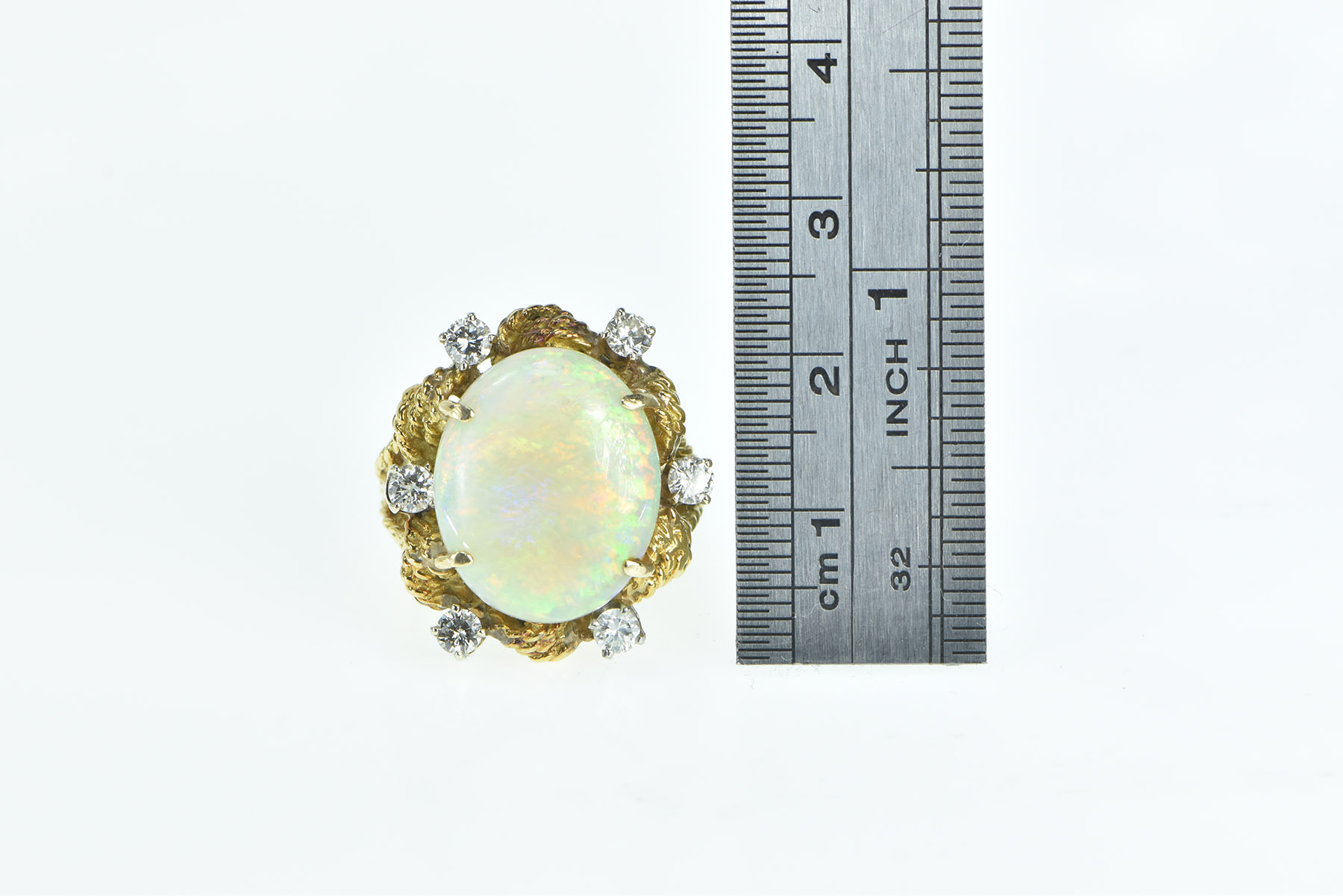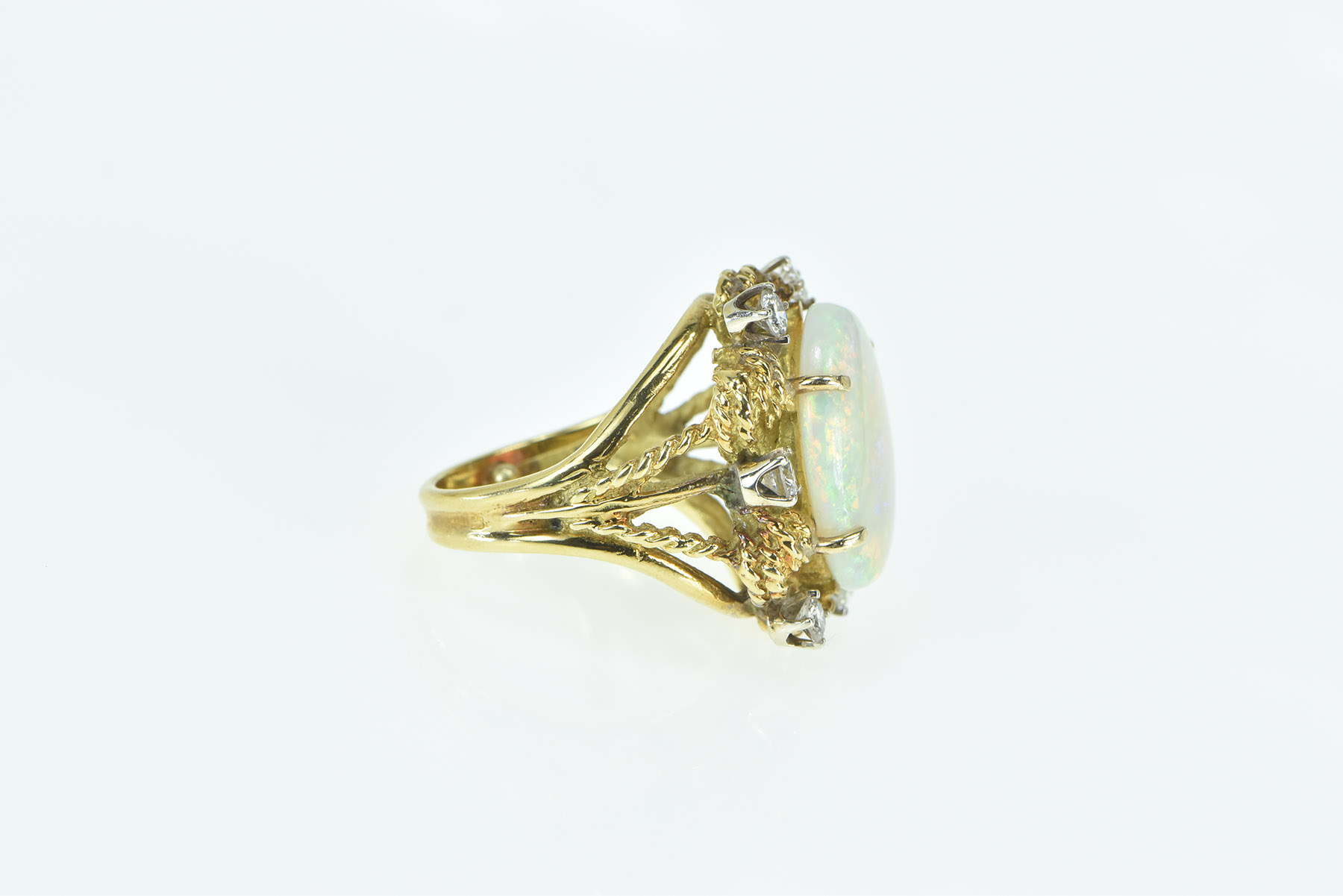 Item:  18K 7.20 Ctw Natural Opal Diamond Rope Statement Yellow Gold Ring, Size 6