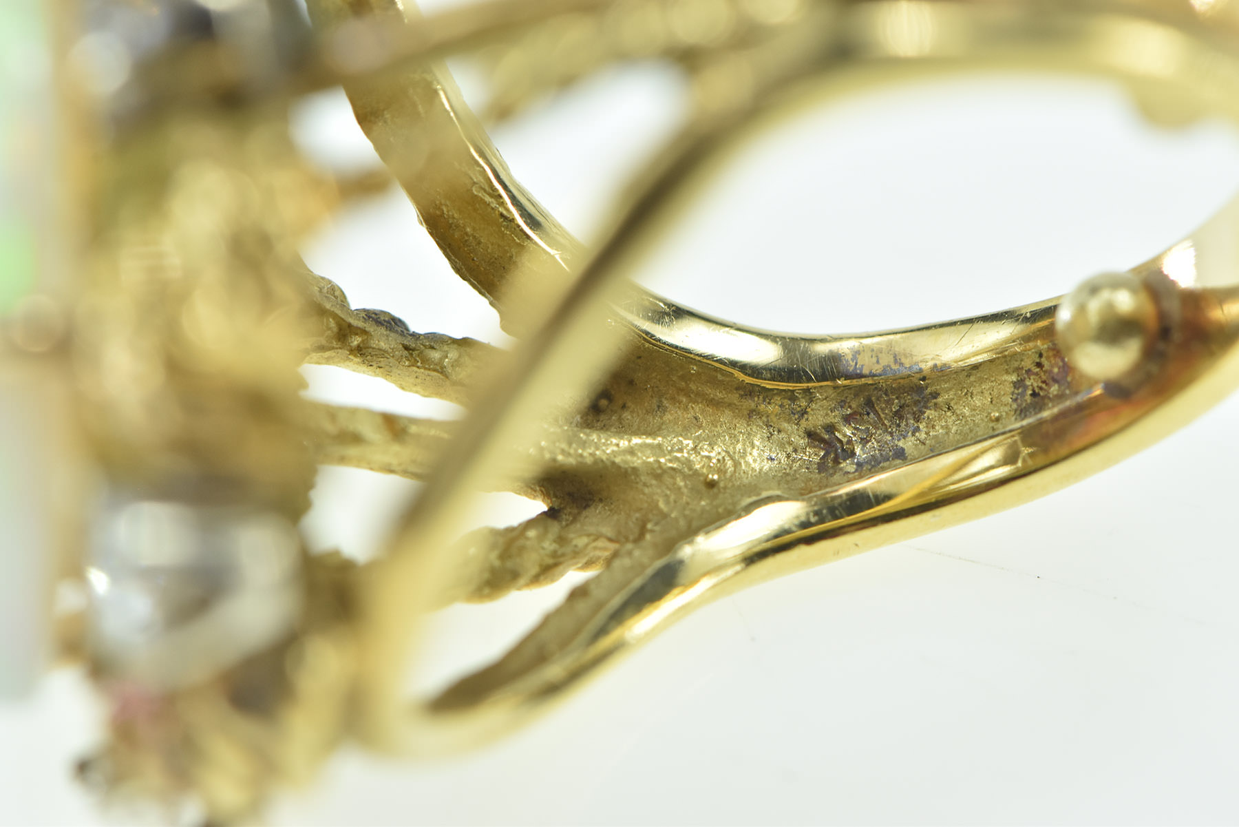 18K 7.20 Ctw Natural Opal Diamond Rope Statement Yellow Gold Ring, Size 6