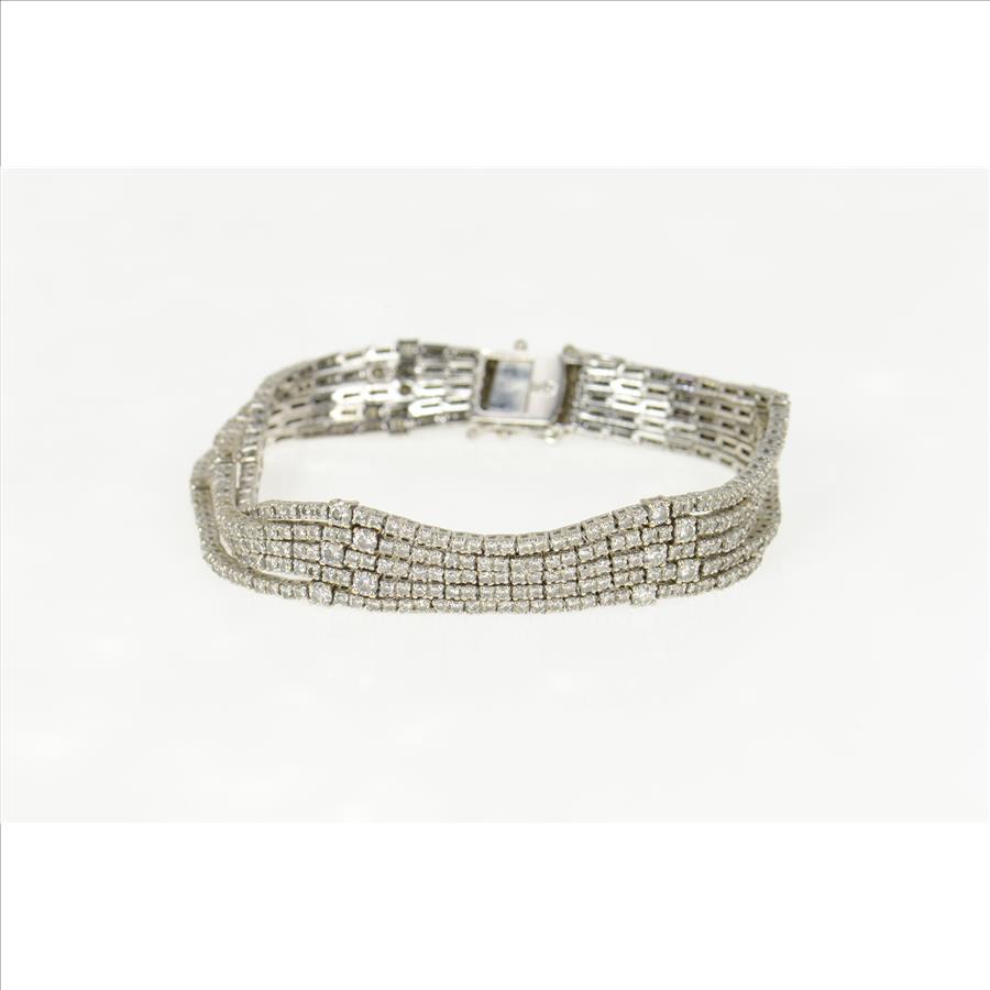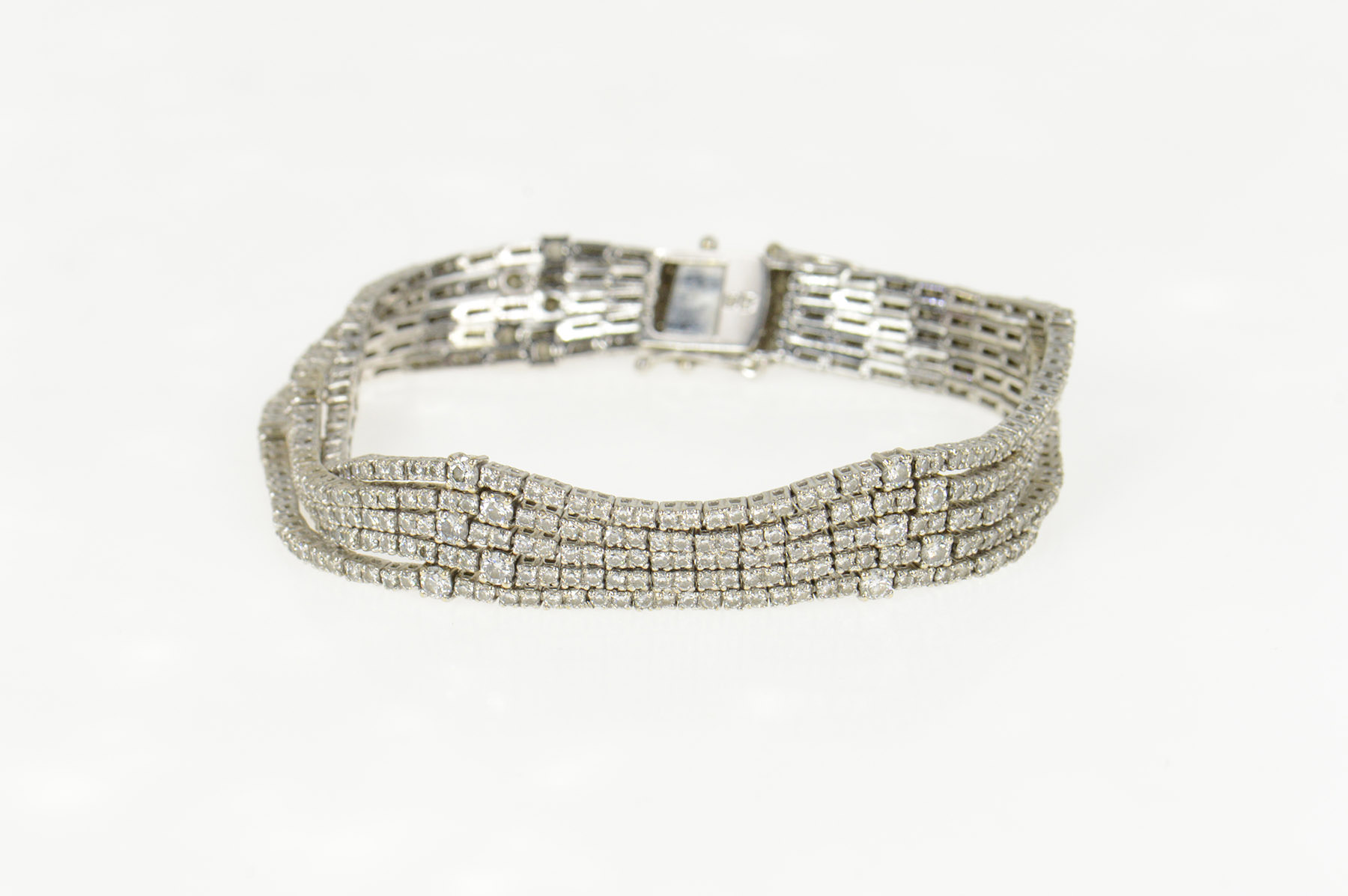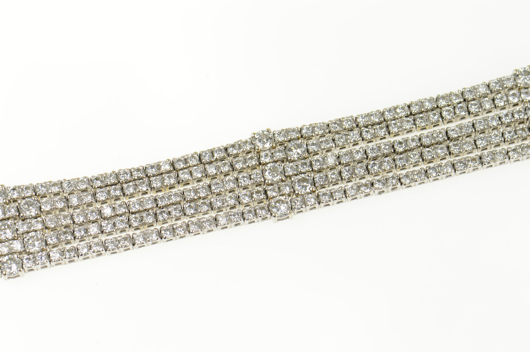 Item:  18K 9.10 Ctw Layered Diamond Five Tiered Tennis White Gold Bracelet 7.25"