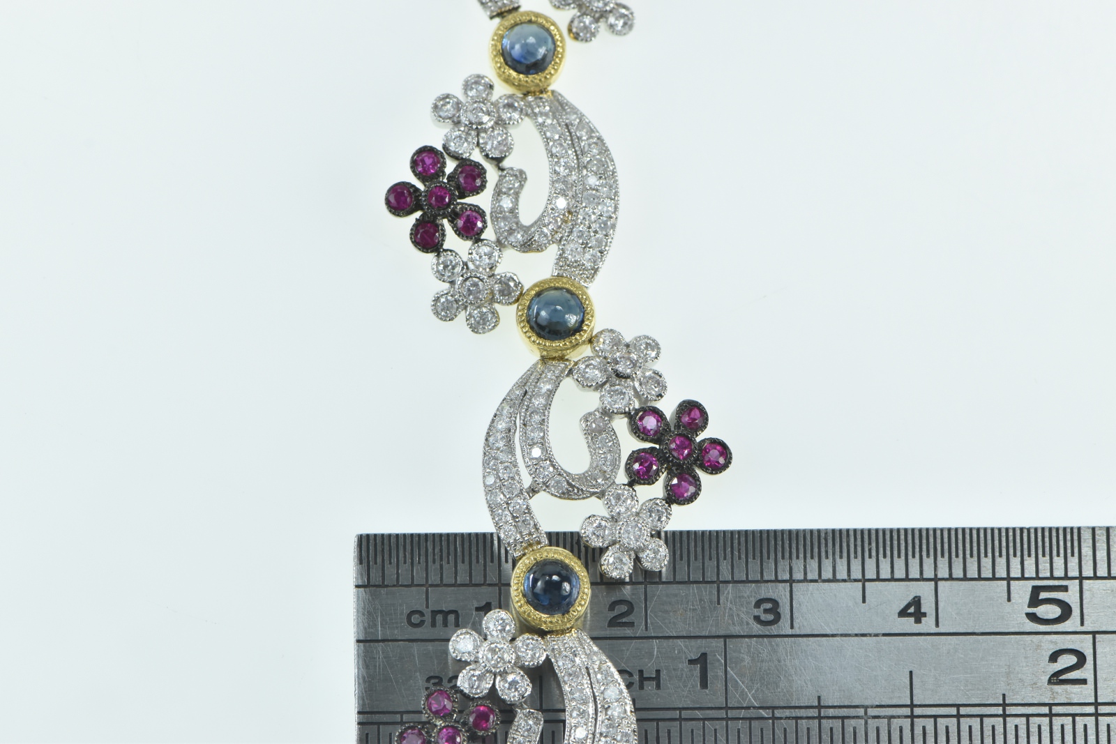 18K 9.40 Ctw Diamond Ruby Sapphire Floral Swirl White Gold Bracelet 7.5"
