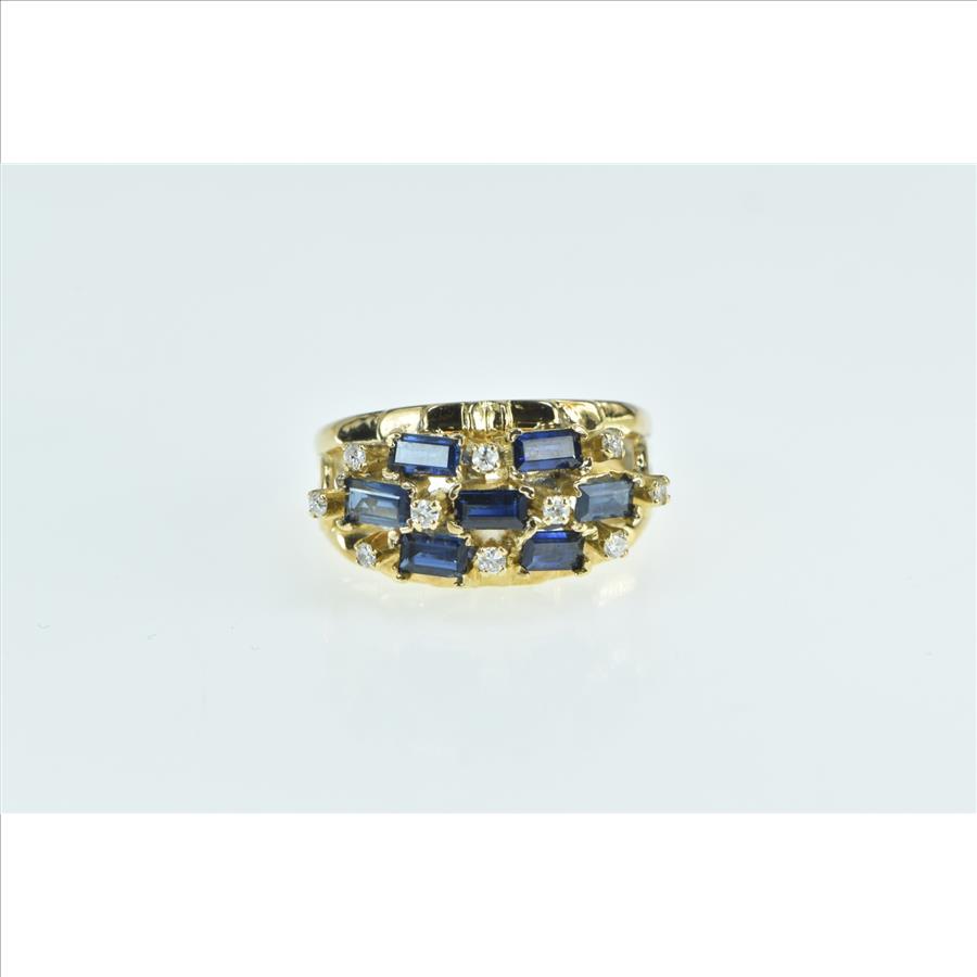 18K Baguette Sapphire Diamond Checkered Yellow Gold Ring, Size 6.25