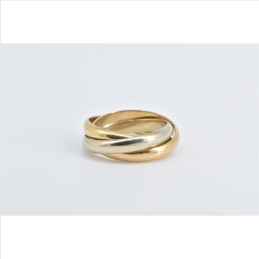 18K Cartier Trinity Tri Tone Three Band Designer Yellow Gold Ring, Size 6