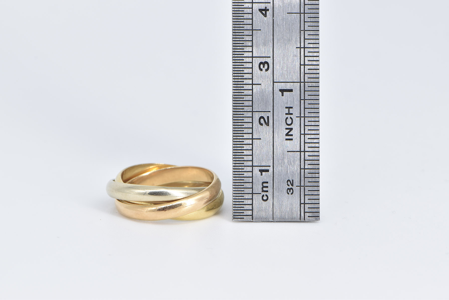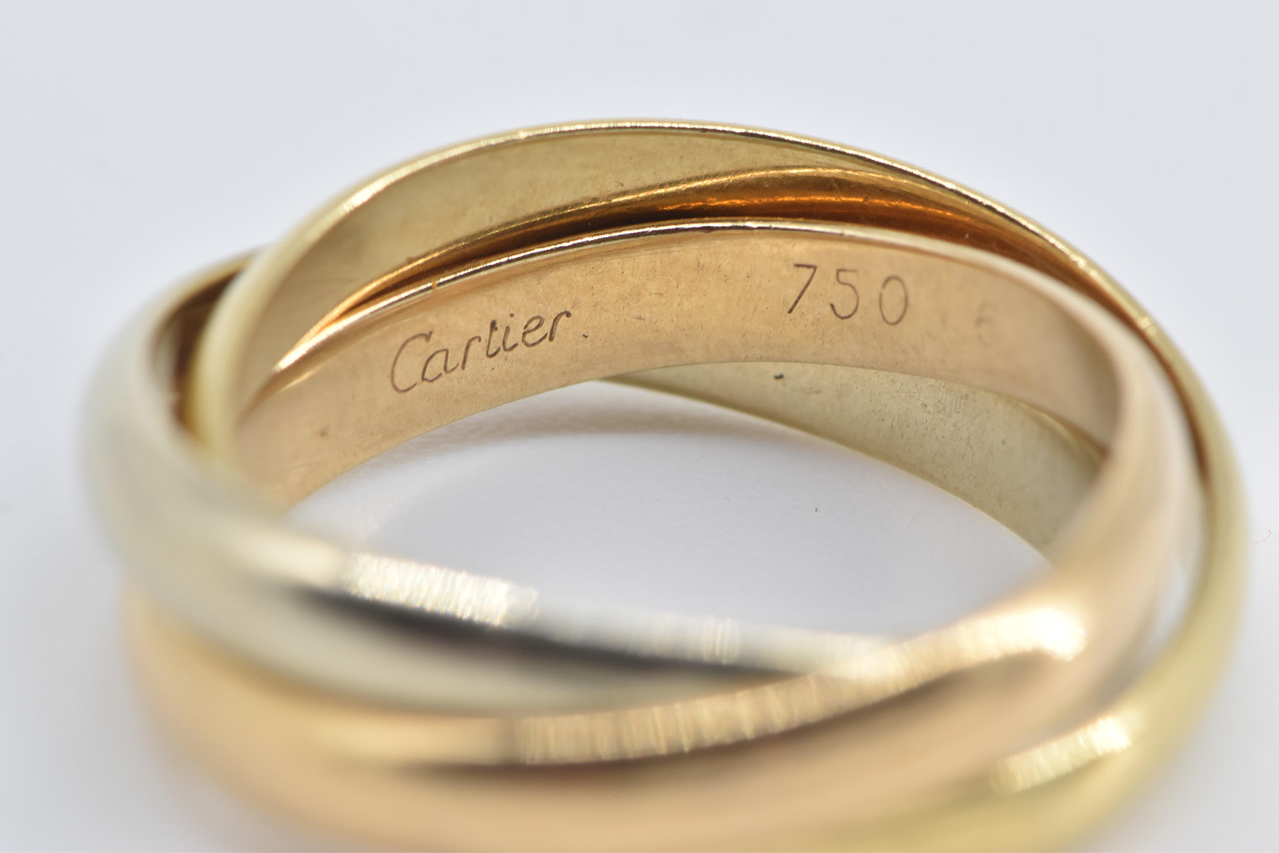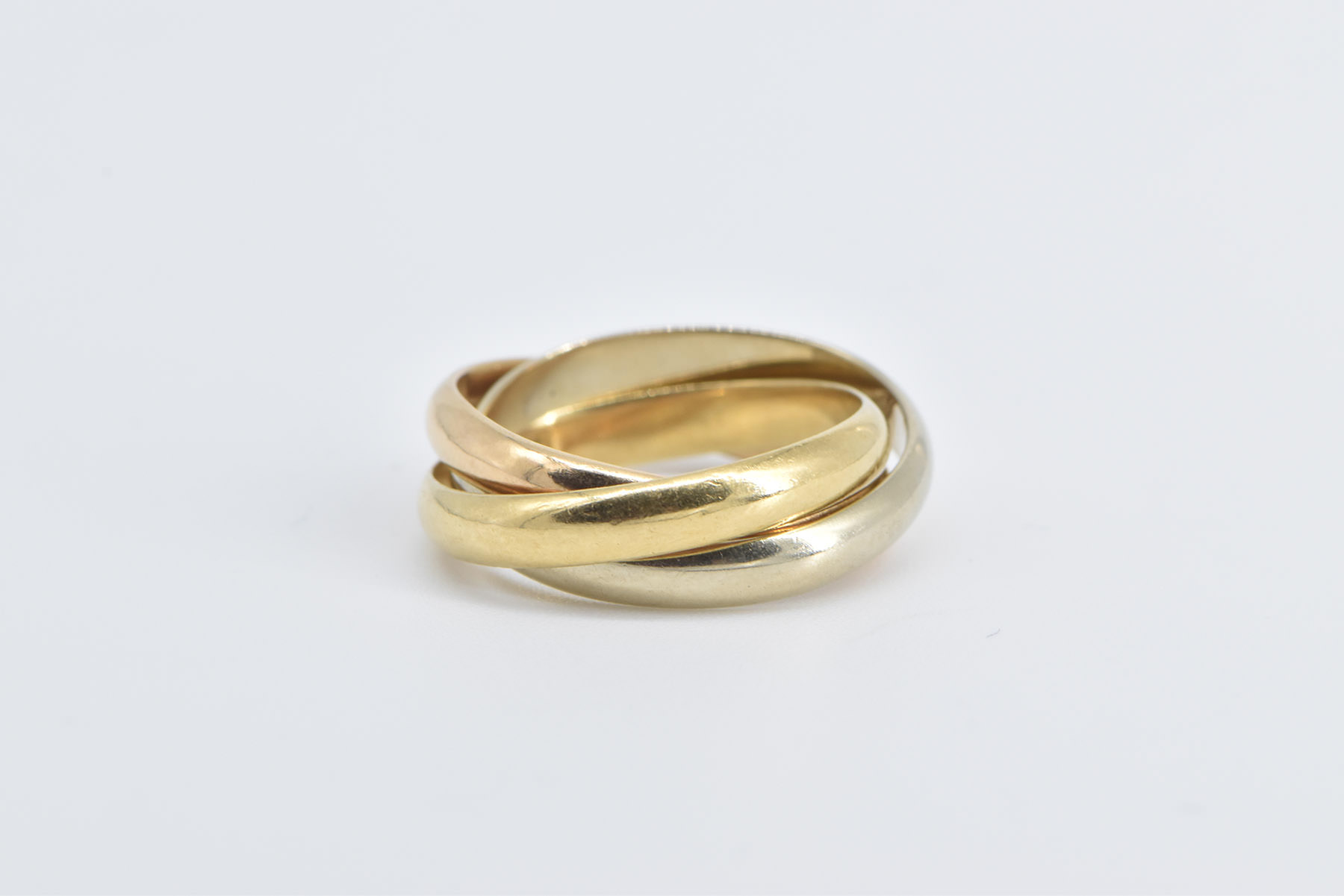 Item:  18K Cartier Trinity Tri Tone Three Band Designer Yellow Gold Ring, Size 6