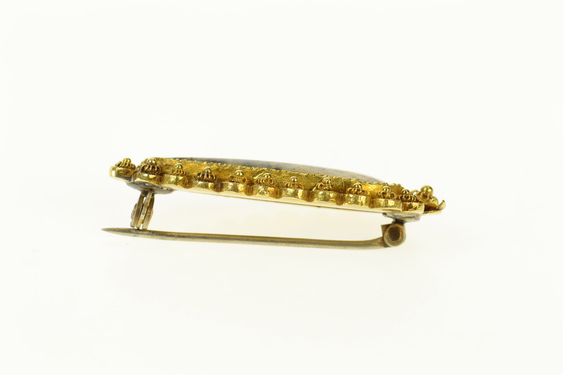 Item:  18K Etruscan Revival Dendritic Agate Pear Yellow Gold Pin/Brooch