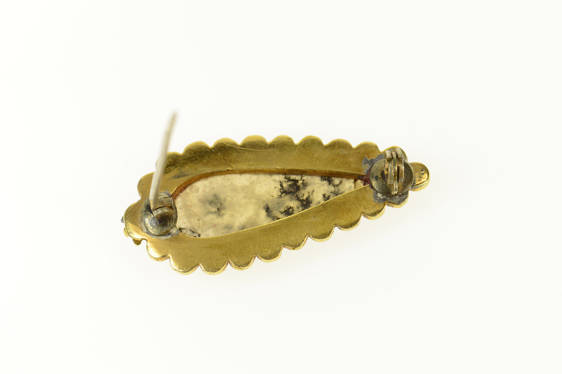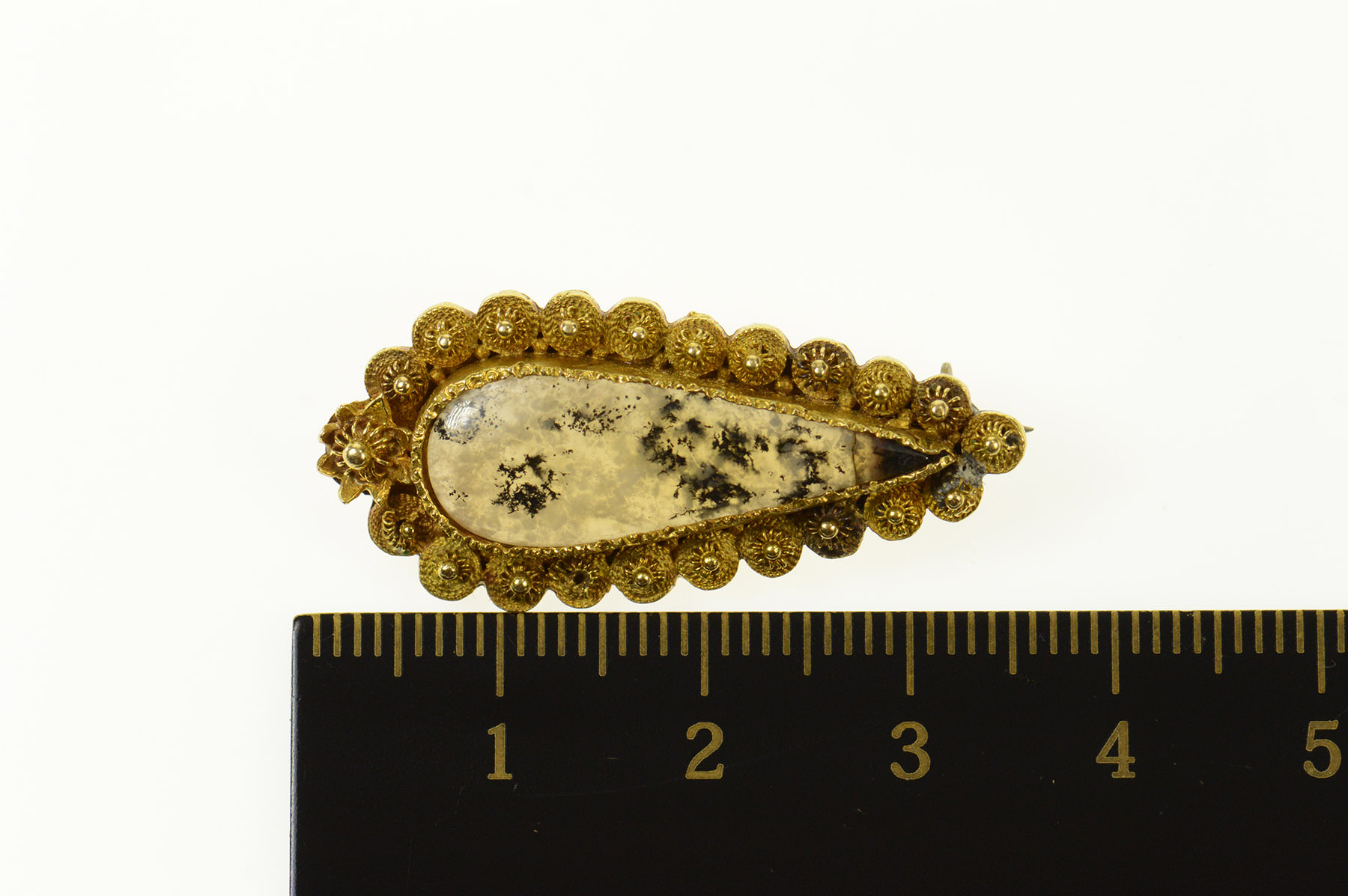 18K Etruscan Revival Dendritic Agate Pear Yellow Gold Pin/Brooch