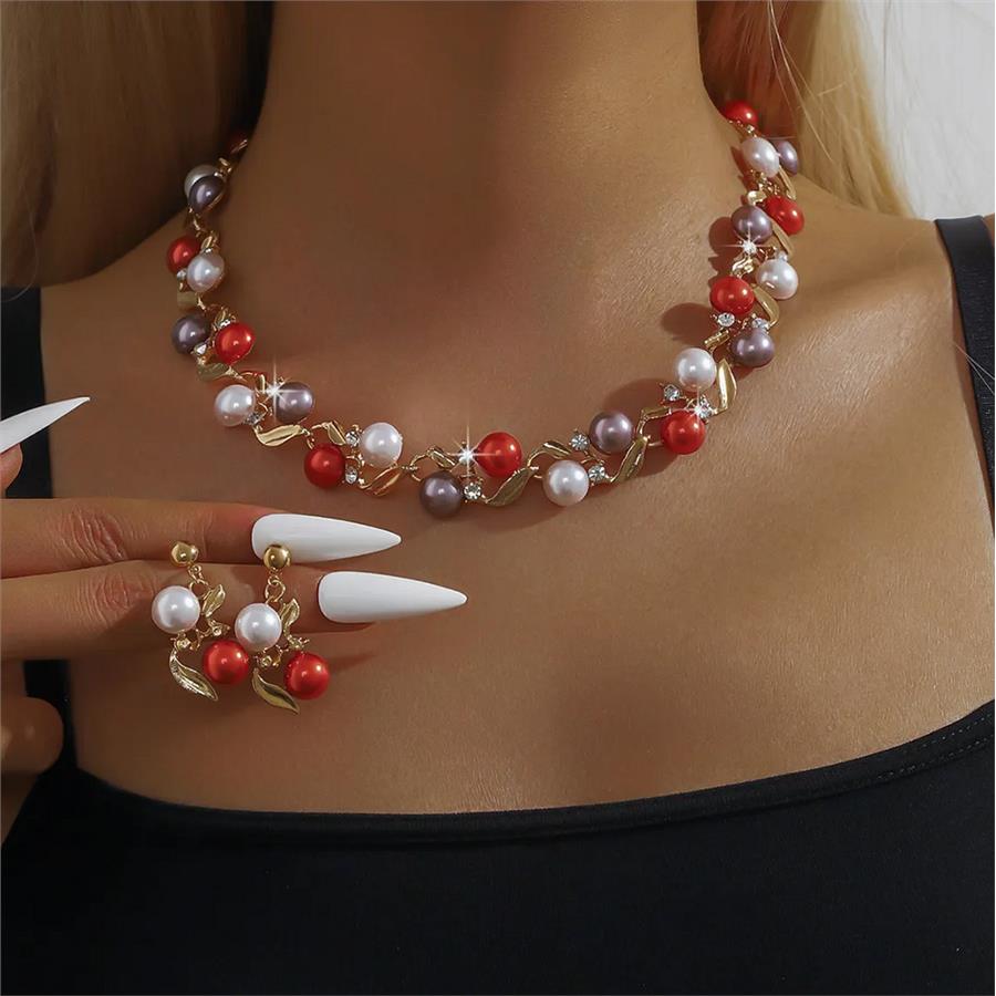 18K Gold Overlay 10mm Multicolor Pearls & Diamonique Diamond Necklace & Earrings Set