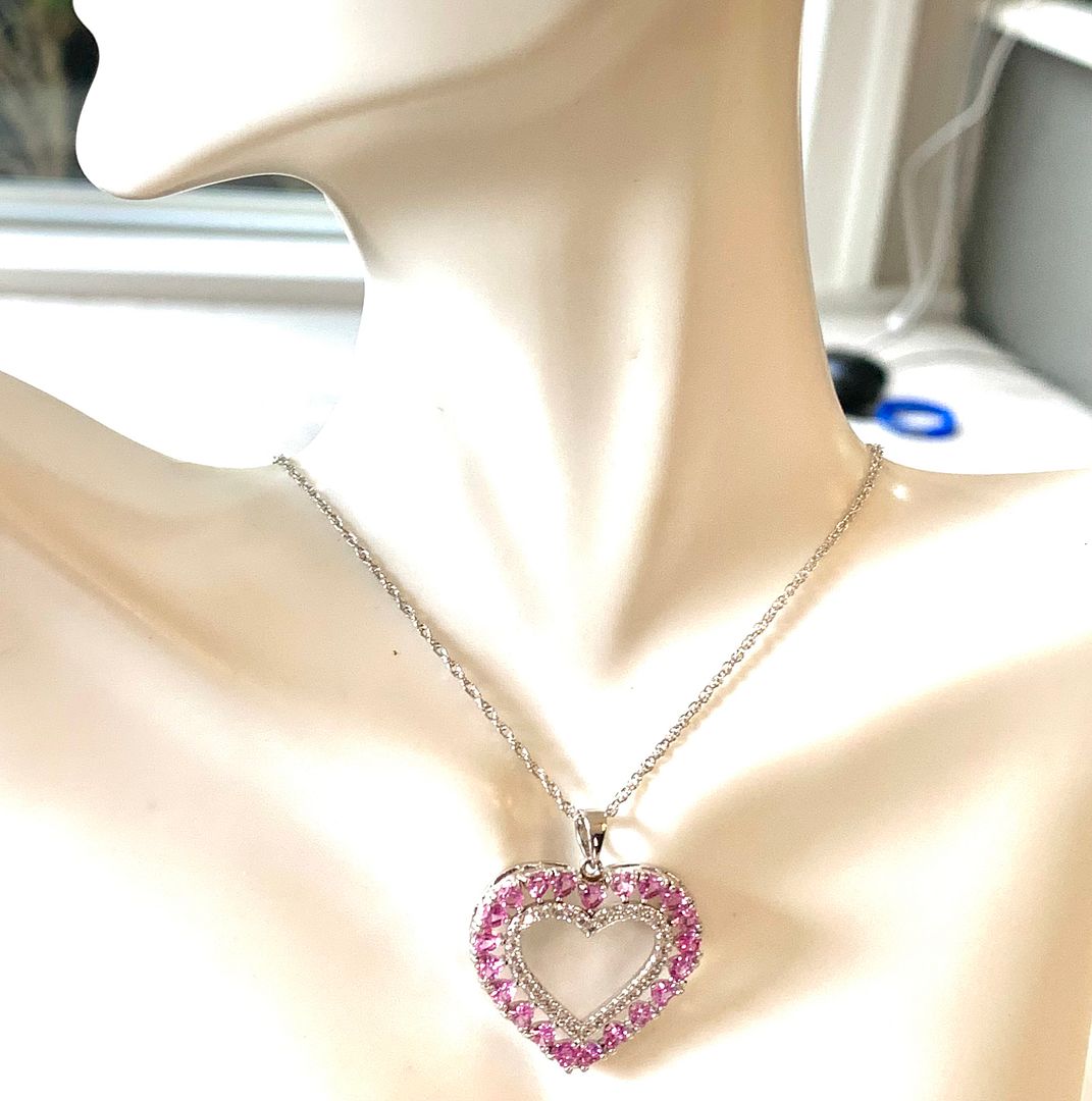 18k Gold Overlay 2.50ctw Pink Topaz & Diamonique Diamonds Heart Necklace