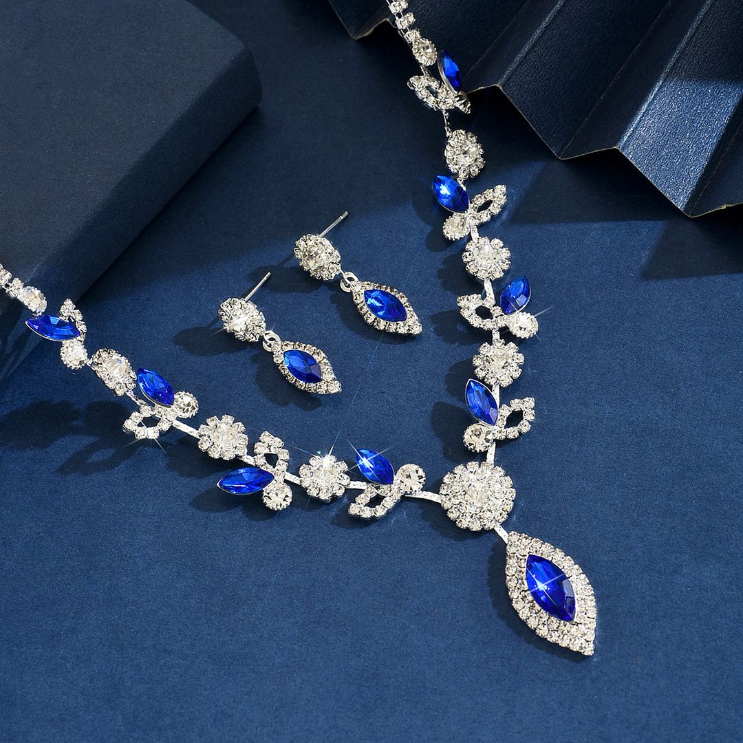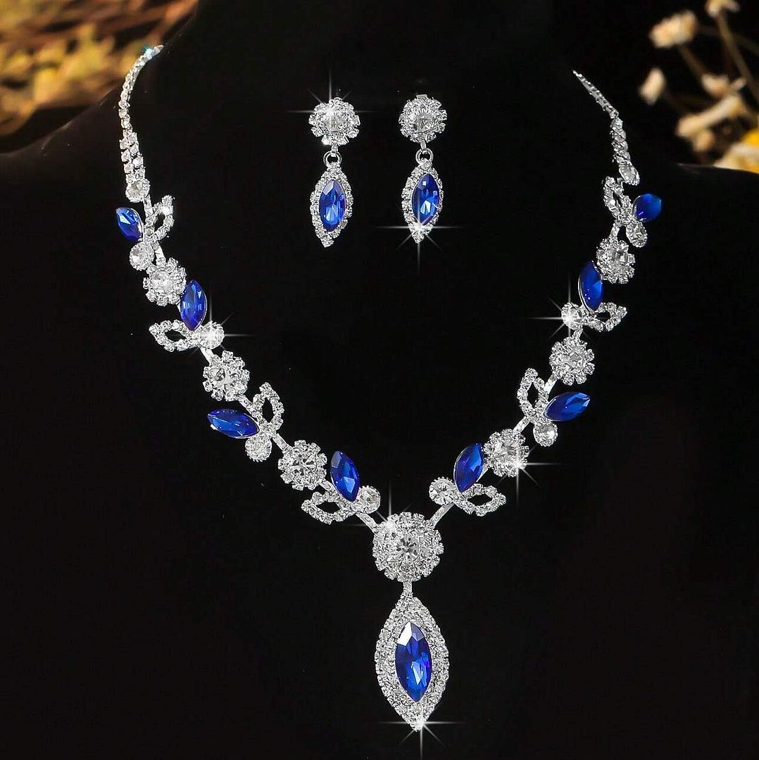 18k Gold Overlay 35.00ctw Sapphire & Diamonique Diamond Necklace & Earrings Set