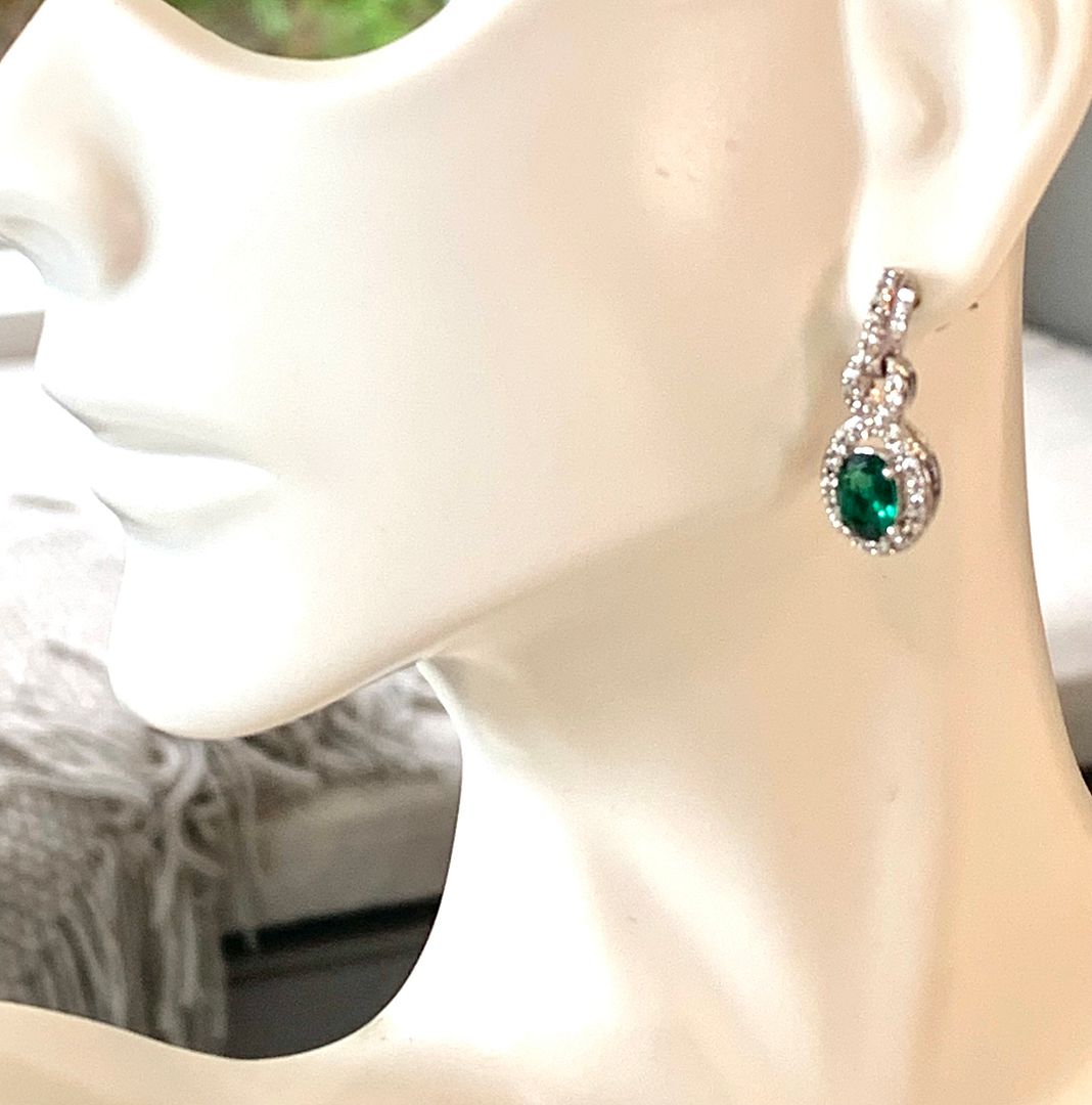 18k Gold Overlay 4.50ctw Emerald & Diamonique Diamonds Earrings