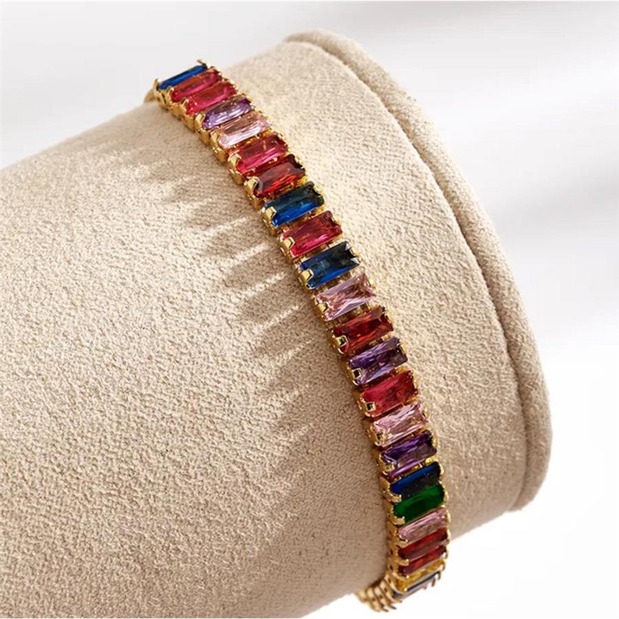 18K Gold Overlay 5.00ctw Multicolor Stones Adjustable 7”-9” Long Bracelet