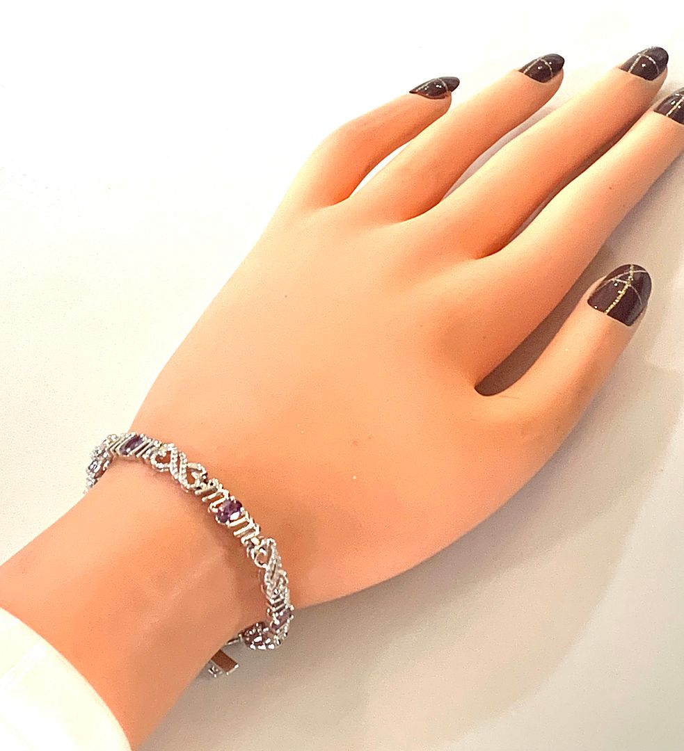 18k Gold Overlay 8.50ctw Amethyst & Diamonique Diamond Tennis Bracelet