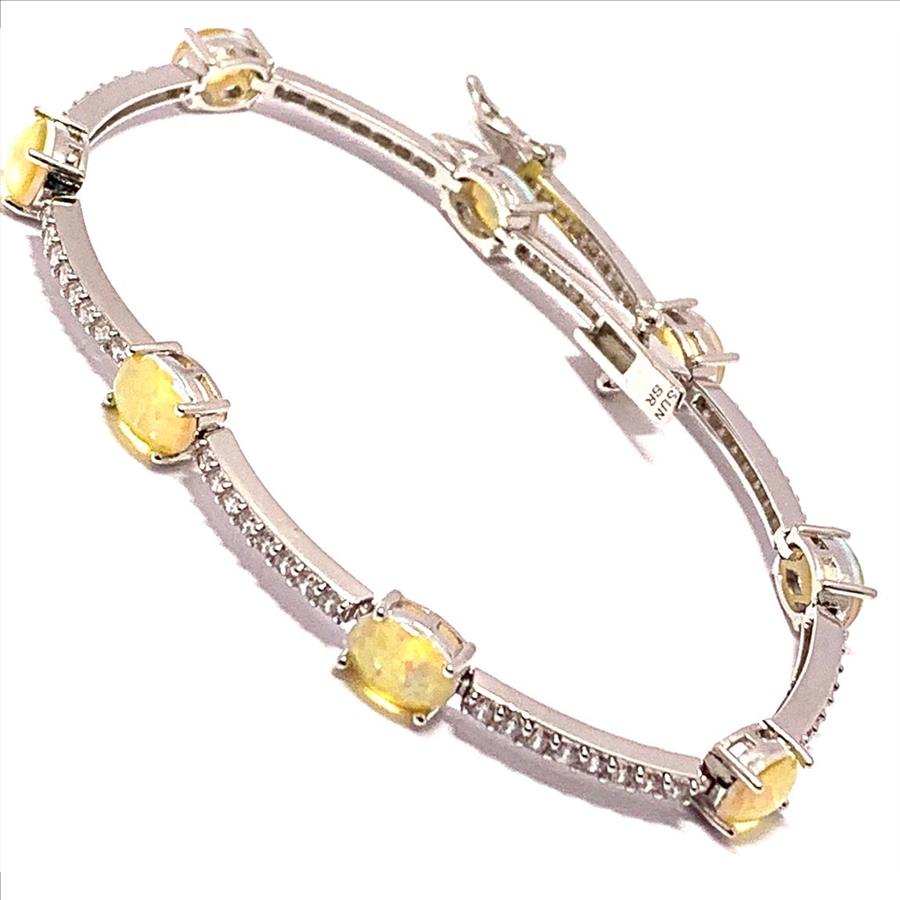 18k Gold Overlay 9.00ctw Opal & Diamonique Diamond Tennis Bracelet