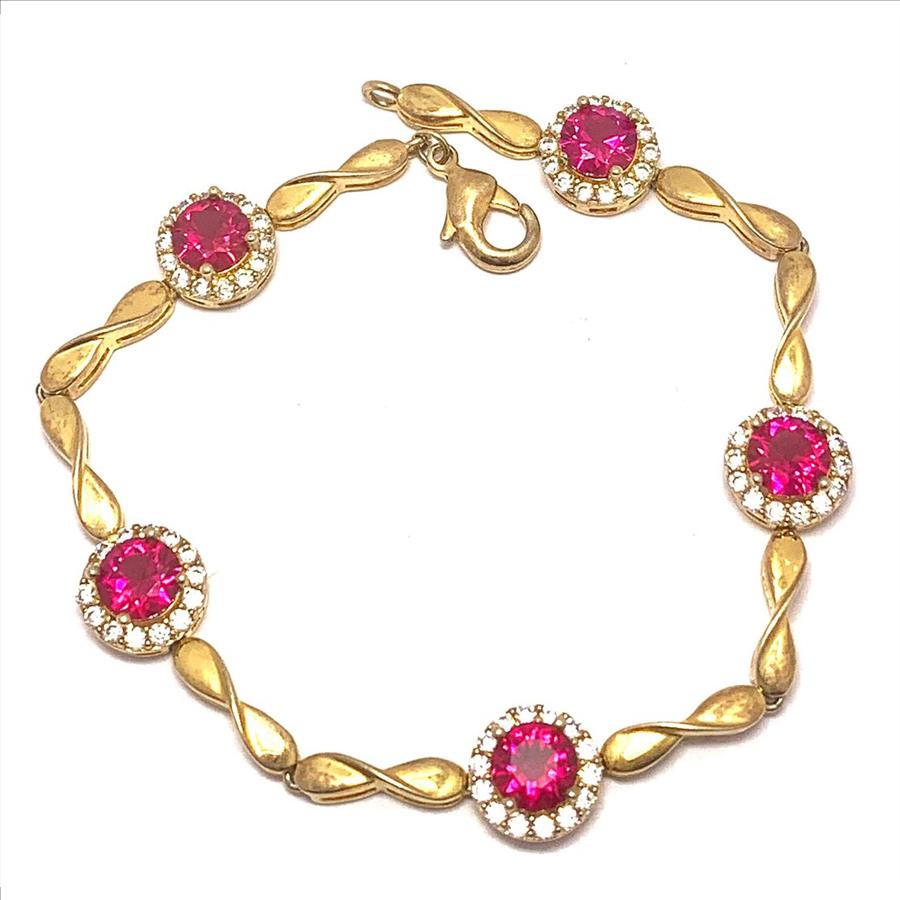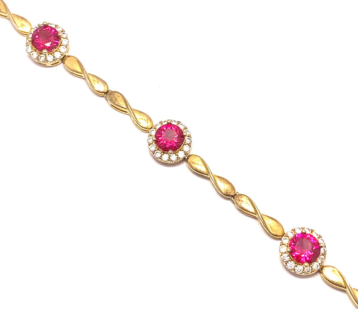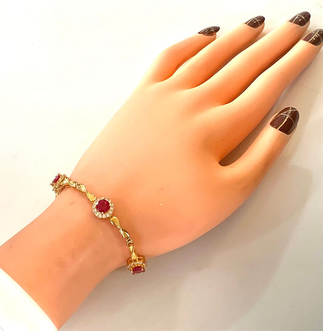 18k Gold Overlay 9.00ctw Ruby & Diamonique Diamond Tennis Bracelet