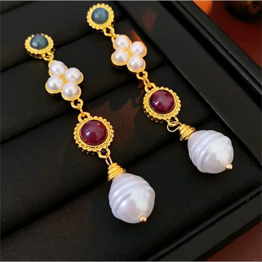18K Gold Overlay Multicolor Stones Dangle Earrings